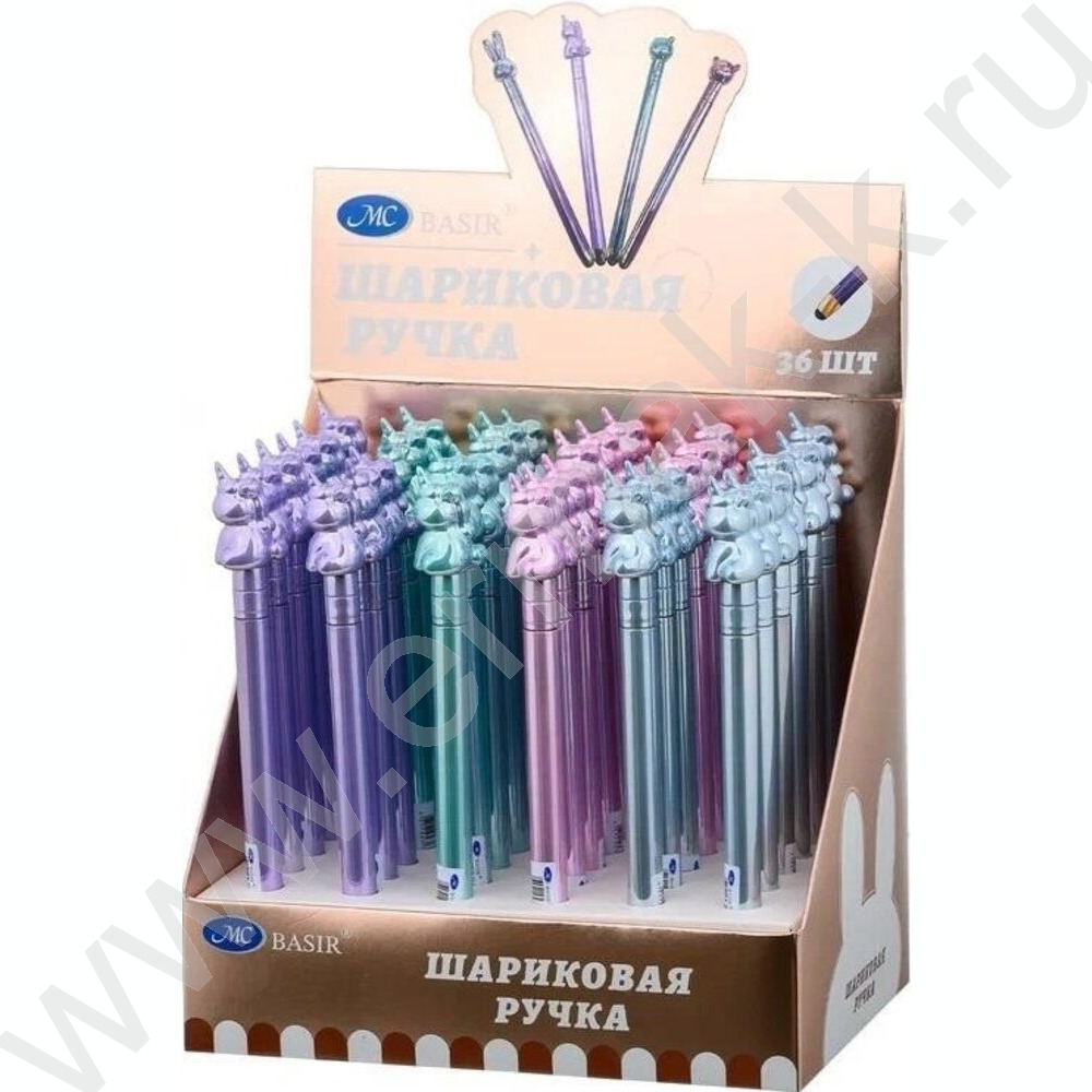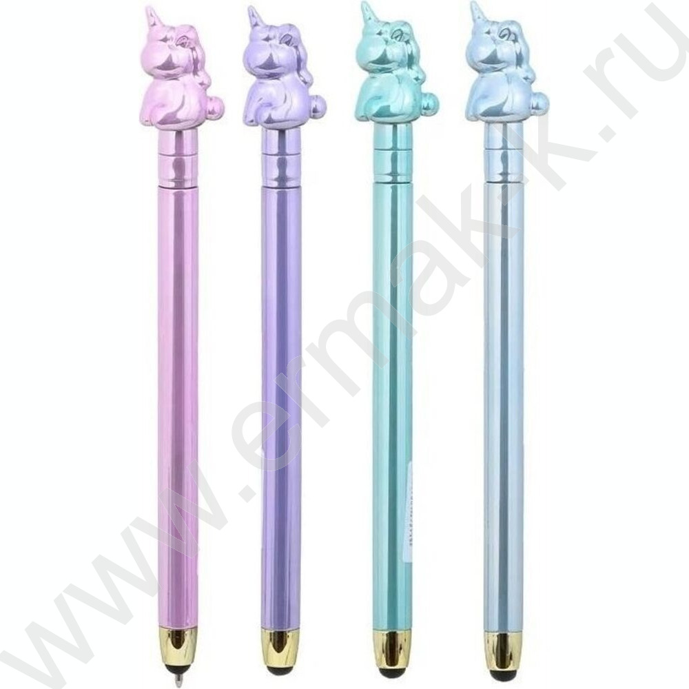Ручка шар стилус поворот/мех.,наконечник-Единорог,цветной-металлик корпус /ассорти/