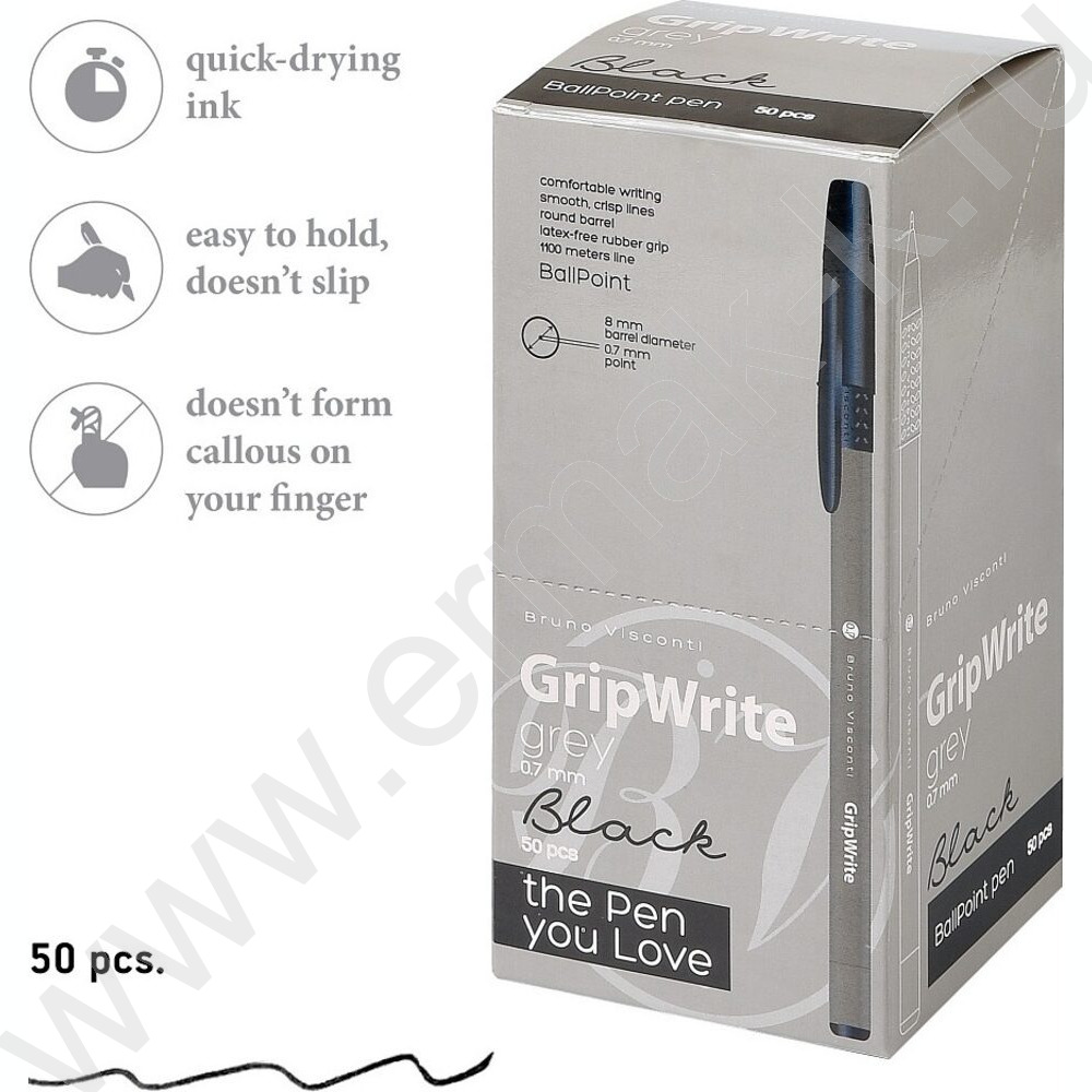 Ручка шар одноразовая 0,7мм GripWrite Grey черная