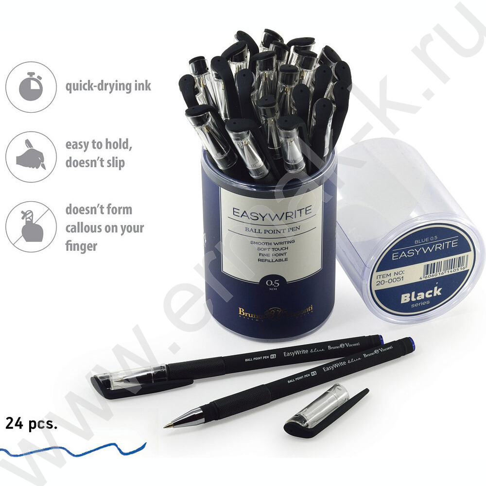 Ручка шар EasyWrite.Black синяя 0,5мм /антискольз.корпус/резин.держатель/