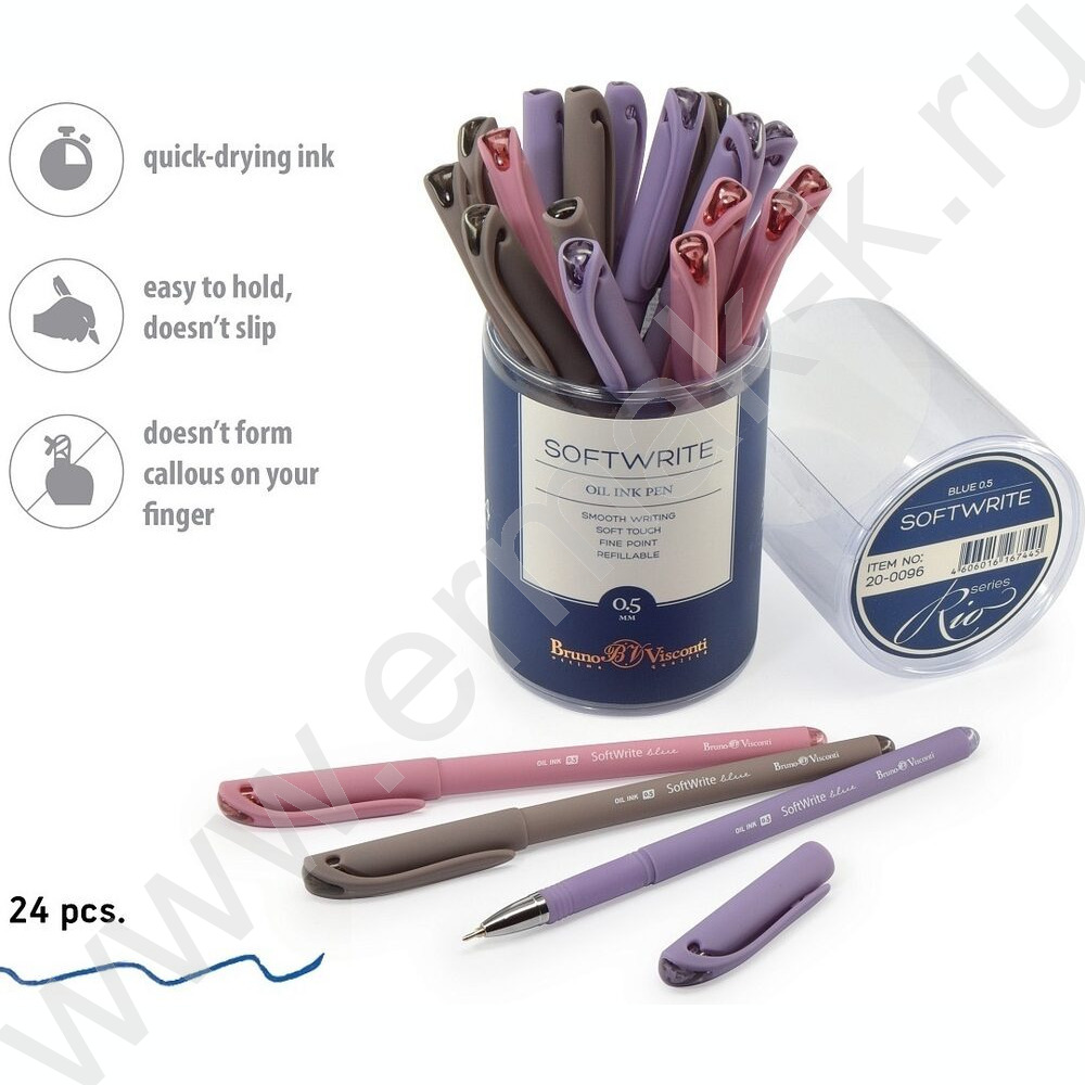 Ручка шар на масл.основе 0,5мм синяя SoftWrite Rio/5цв.корпуса