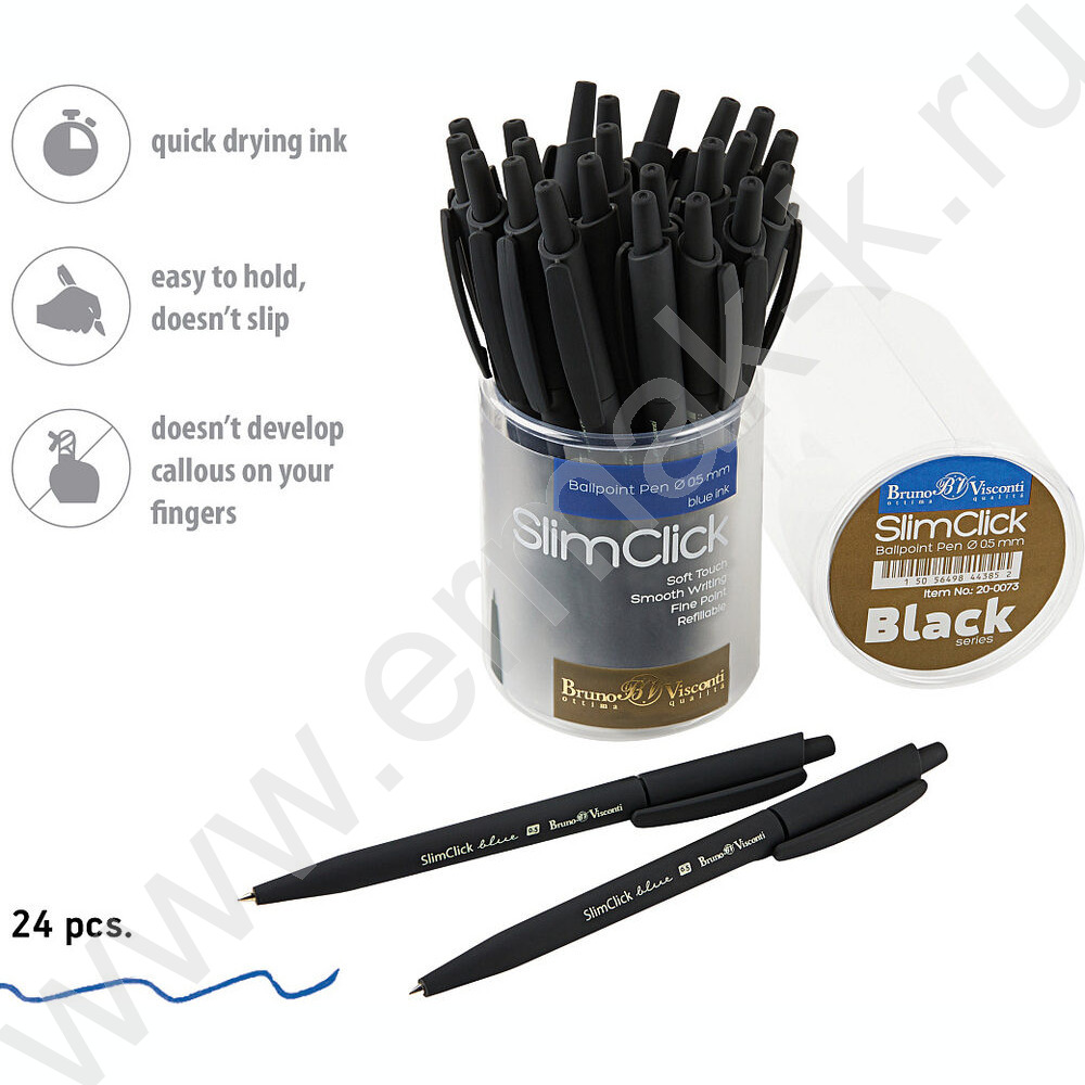 Ручка шар авт SlimClick.Black синяя 0,5мм /антискольз.корпус