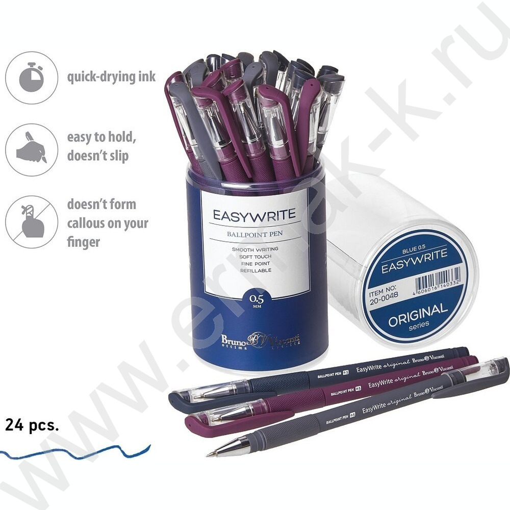 Ручка шар EasyWrite.Original синяя 0,5мм /антискольз.корпус/резин.держатель/3цв.корпуса