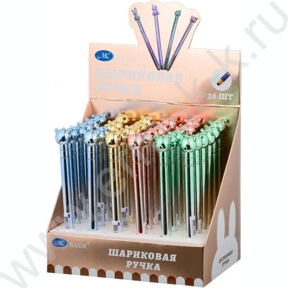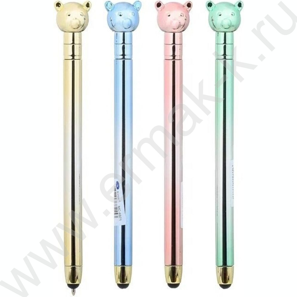 Ручка шар стилус поворот/мех.,наконечник-Мишка,цветной-металлик корпус /ассорти/