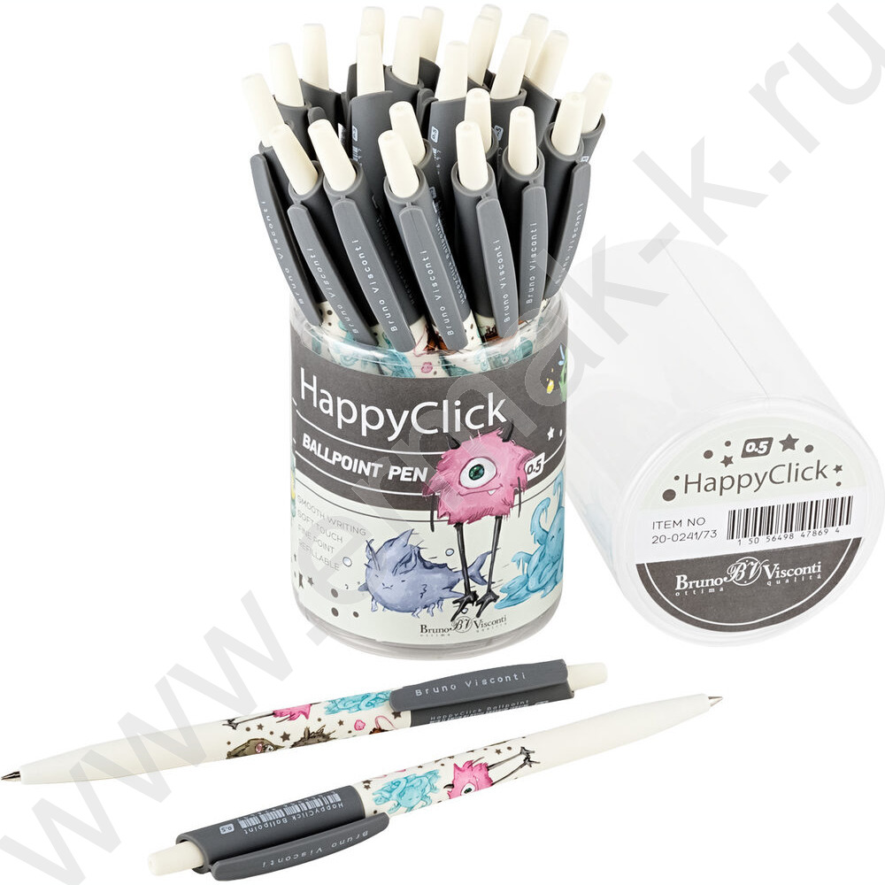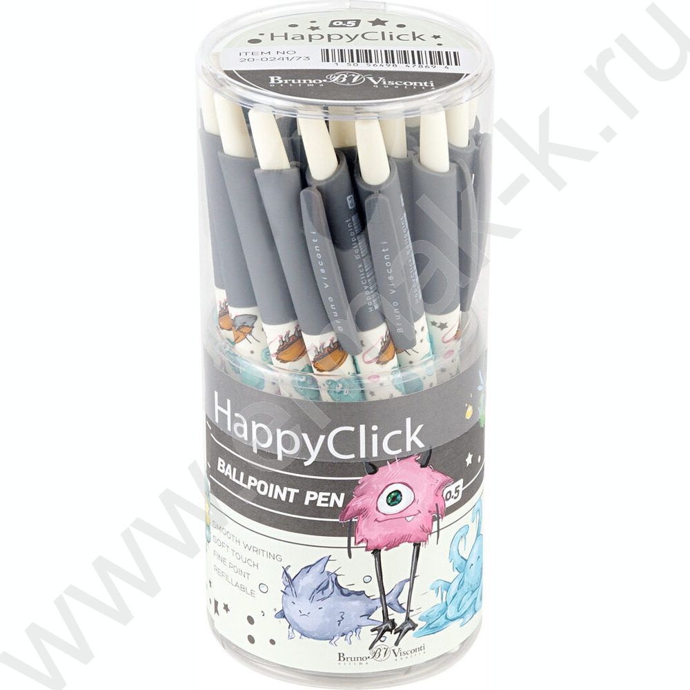 Ручка шар авт HappyClick. Монстрики синяя 0,5мм