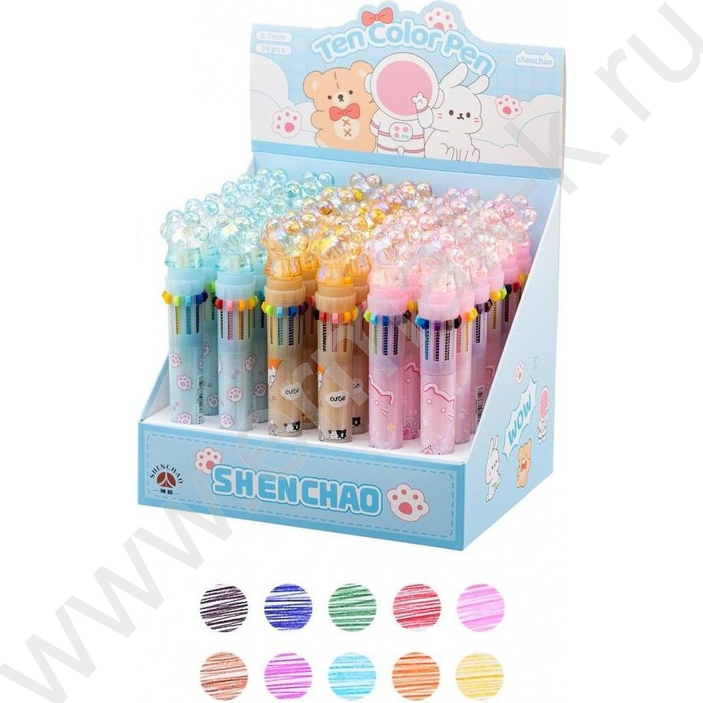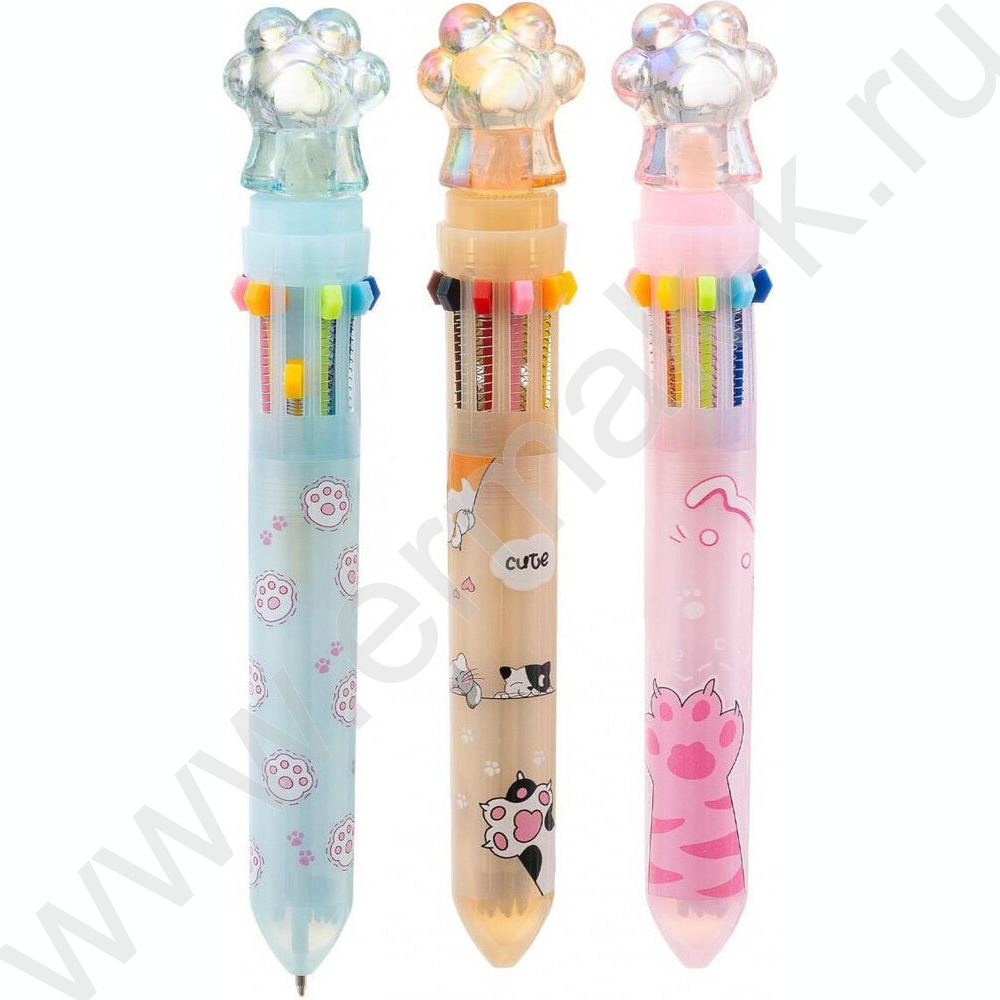 Ручка шар авт 10-ти цветная 0,7мм детская Лапки цв. корпус с рисунком ассорти