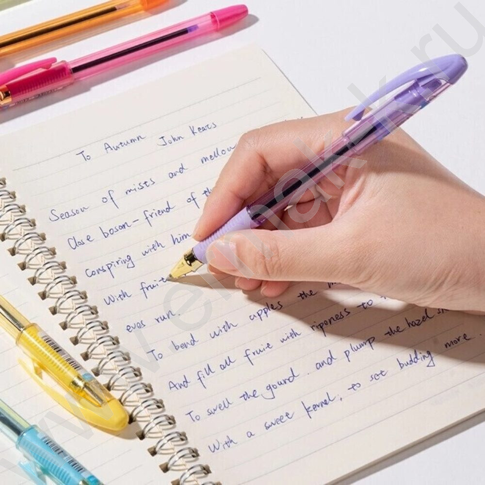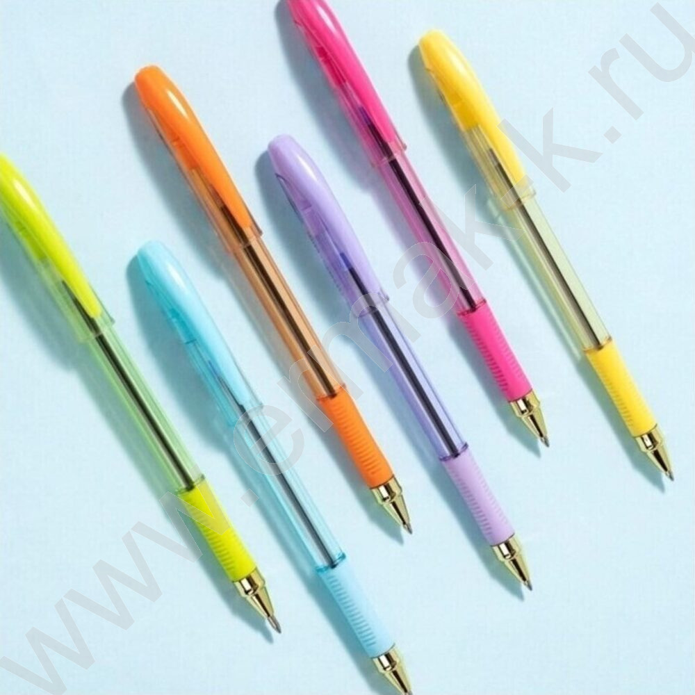 Ручка шар синяя 0,7мм, резиновая манжета /ассорти