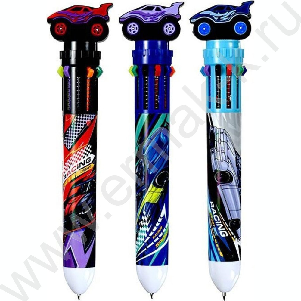 Ручка шар авт 10-ти цветная 0,7мм Racing /корпус пл.цветной, сменный стержень 68мм