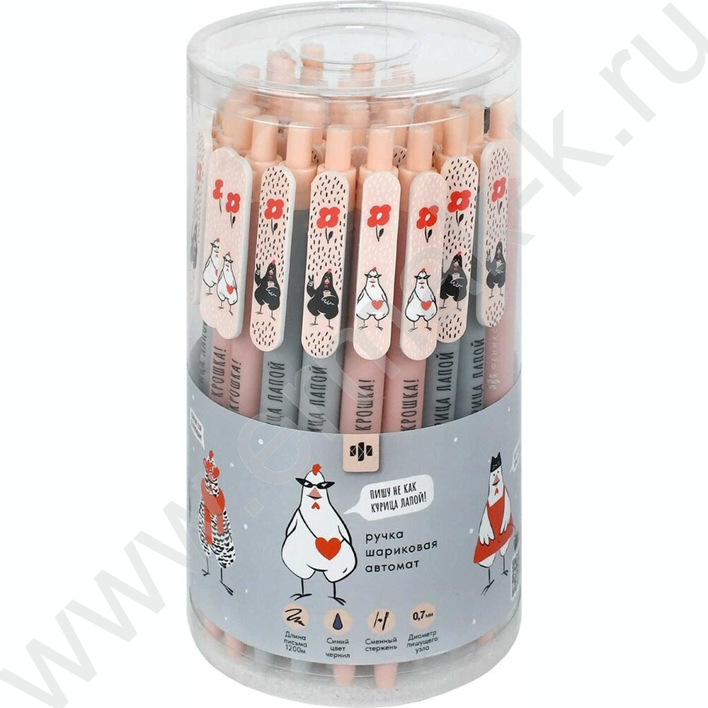 Ручка шар авт 0,7мм синяя Стильные курочки /софт-тач/ассорти/