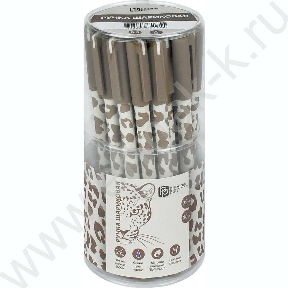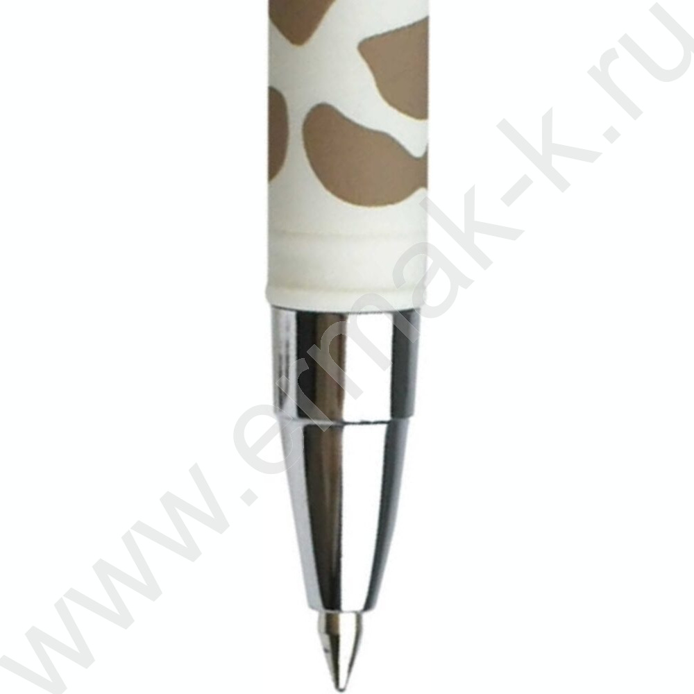 Ручка шар 0,5мм синяя Леопард бежевый /софт-тач/