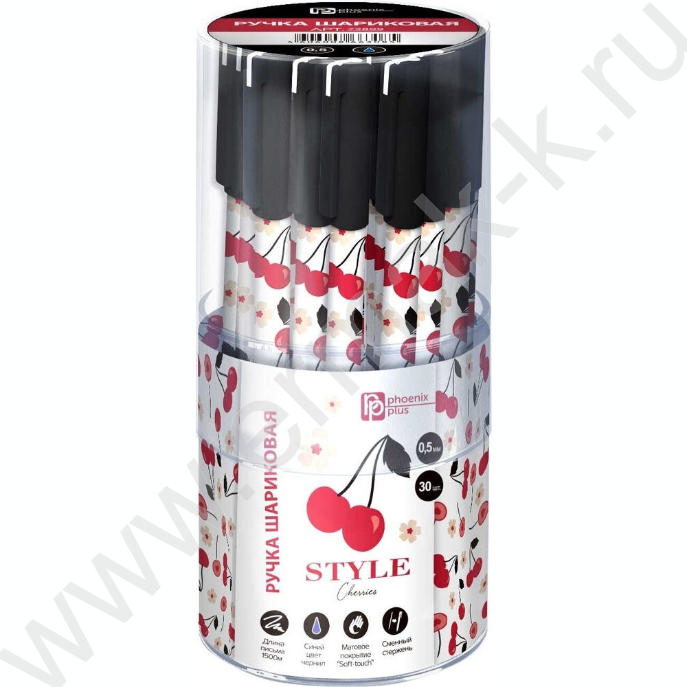 Ручка шар 0,5мм синяя Вишни на белом /корпус софт-тач NEW