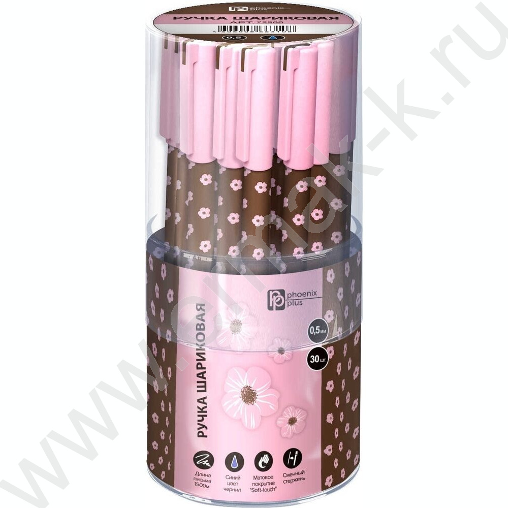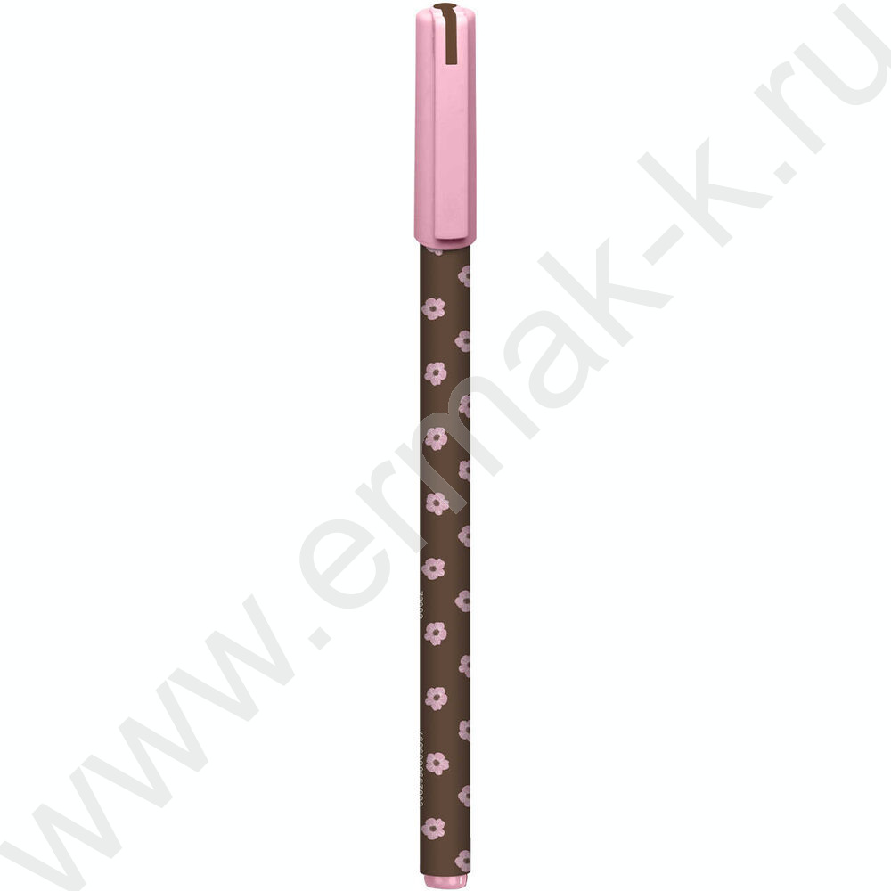 Ручка шар 0,5мм синяя Цветочки на коричневом /корпус софт-тач NEW