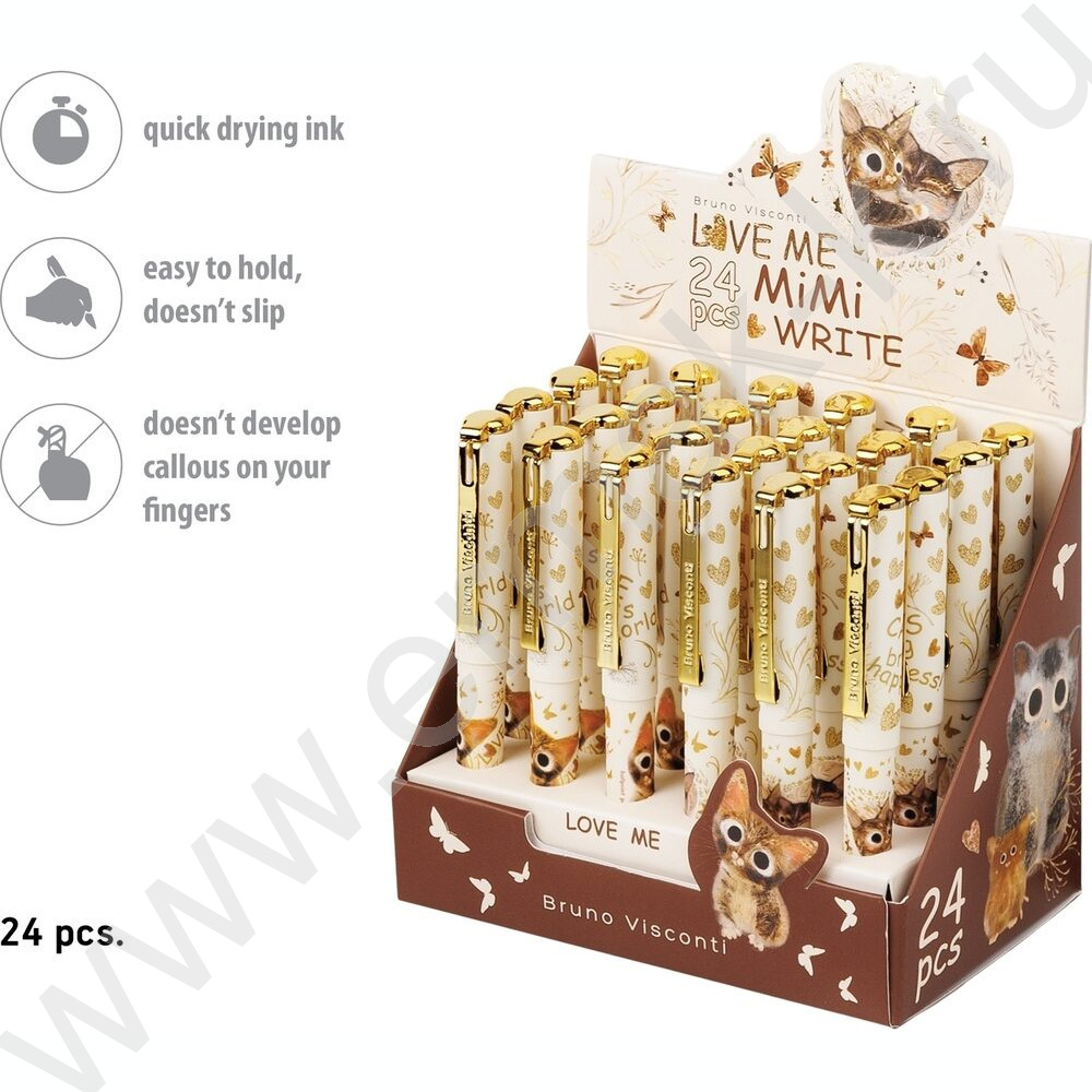 Ручка шар Mimiwrite.Love me.Милый котик синяя 0,5мм /корпус SOFT TOUCH NEW