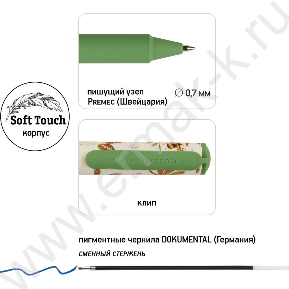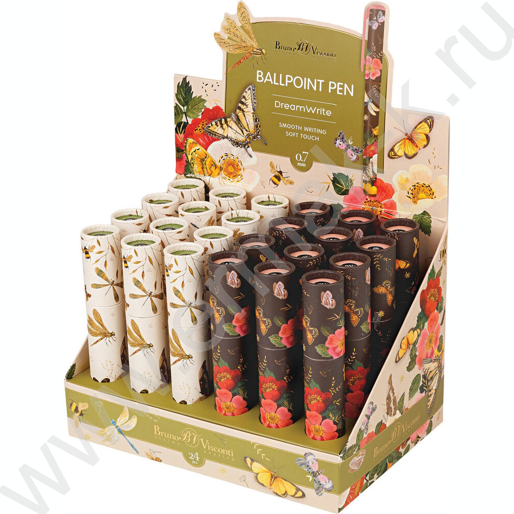 Ручка шар DreamWrite. Flora.Бабочки синяя 0,7мм /корпус SOFT TOUCH,туба NEW