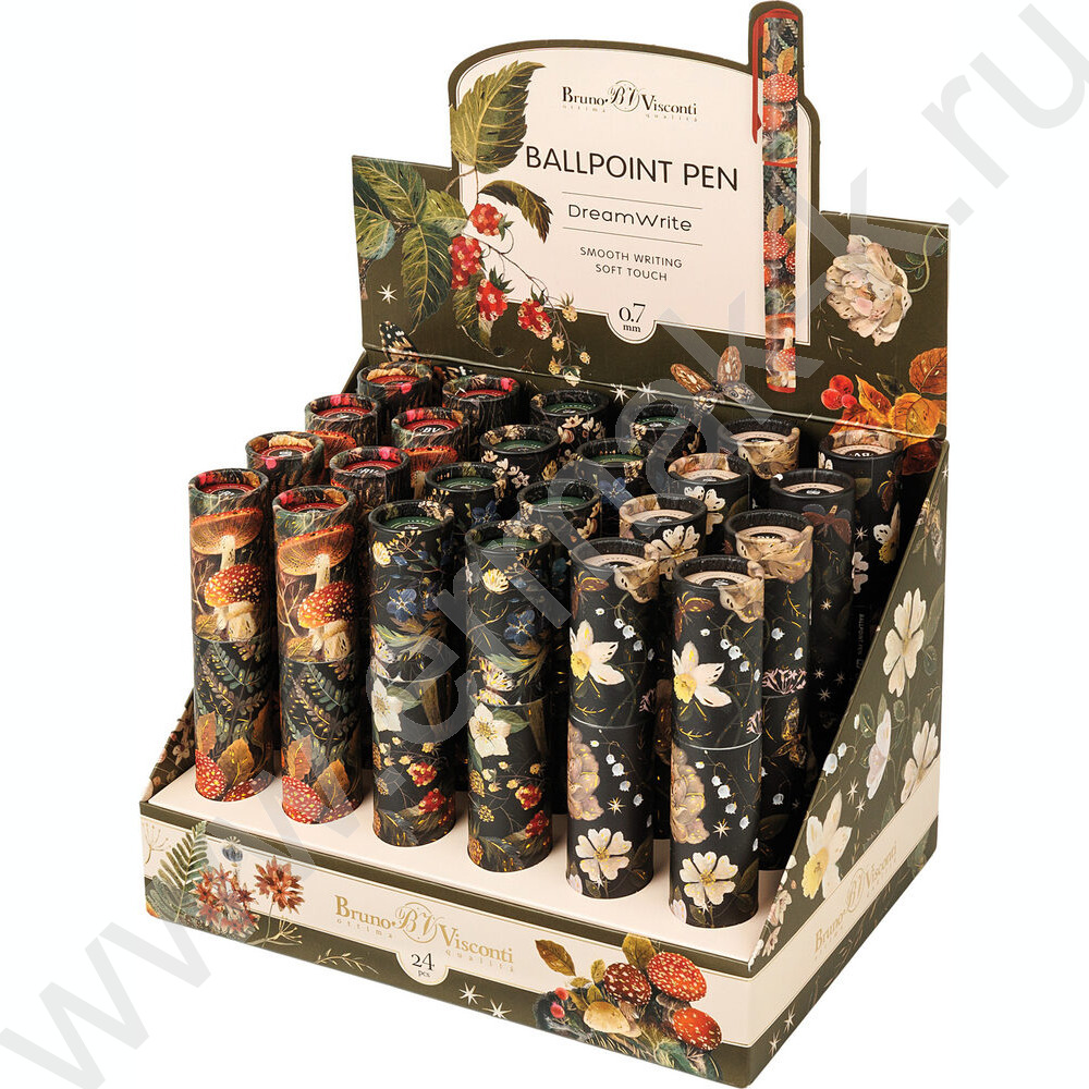 Ручка шар DreamWrite. Flora.Black night forest синяя 0,7мм /корпус SOFT TOUCH,туба NEW
