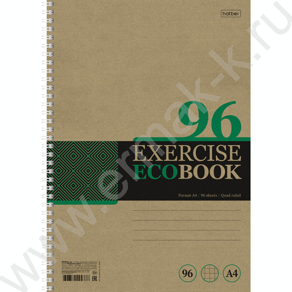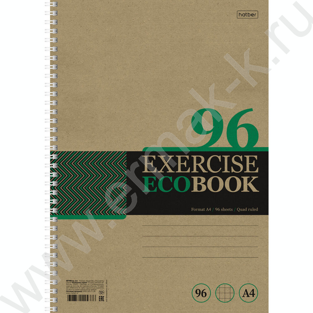 Тетрадь 96л А4 клетка/спираль/многоуров.перфорация Экобук" /крафт 4вида
