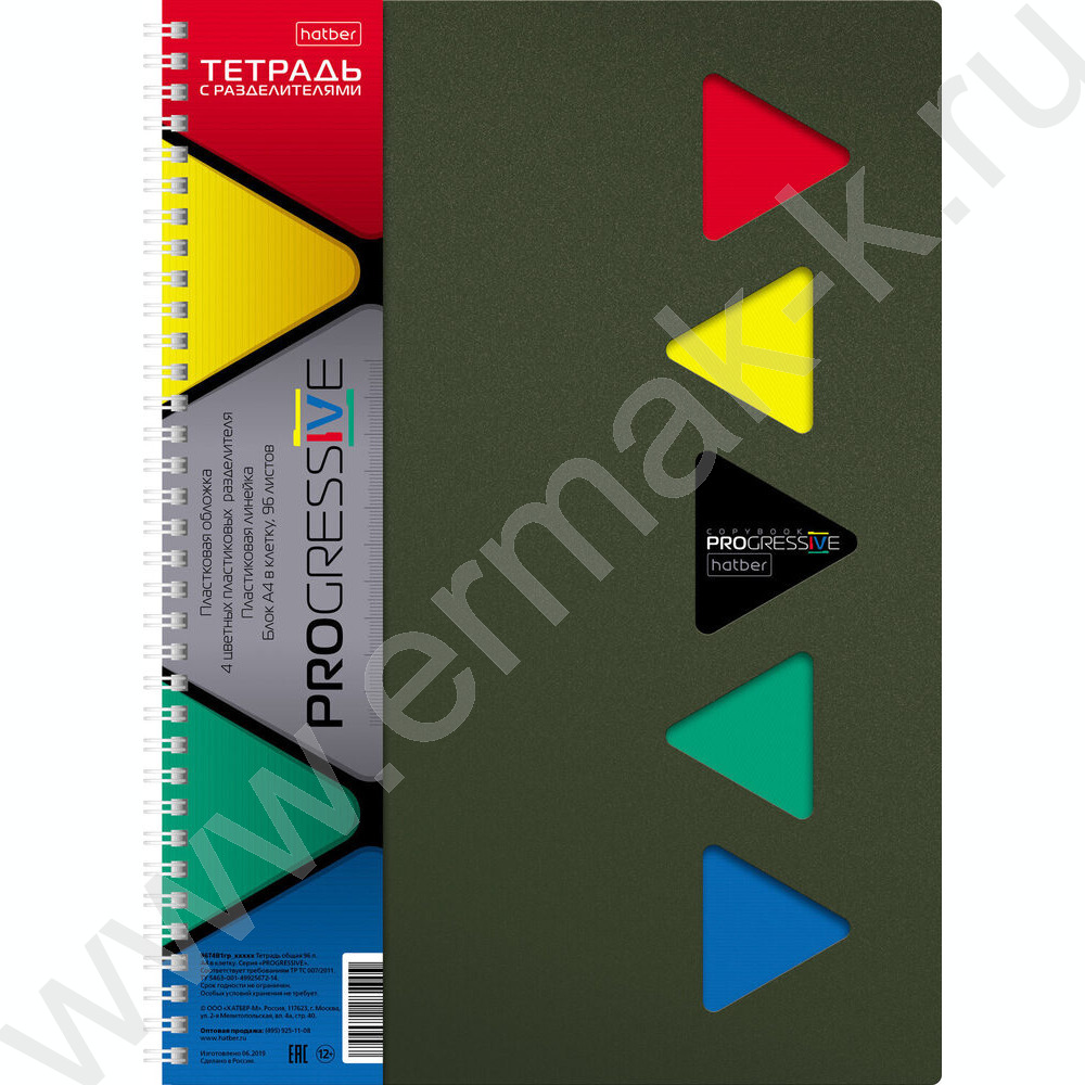 Тетрадь 96л А4 клетка/спираль с фигурной высечкой/перфорация на отрыв/пл.обл./4цв.разделителя с
