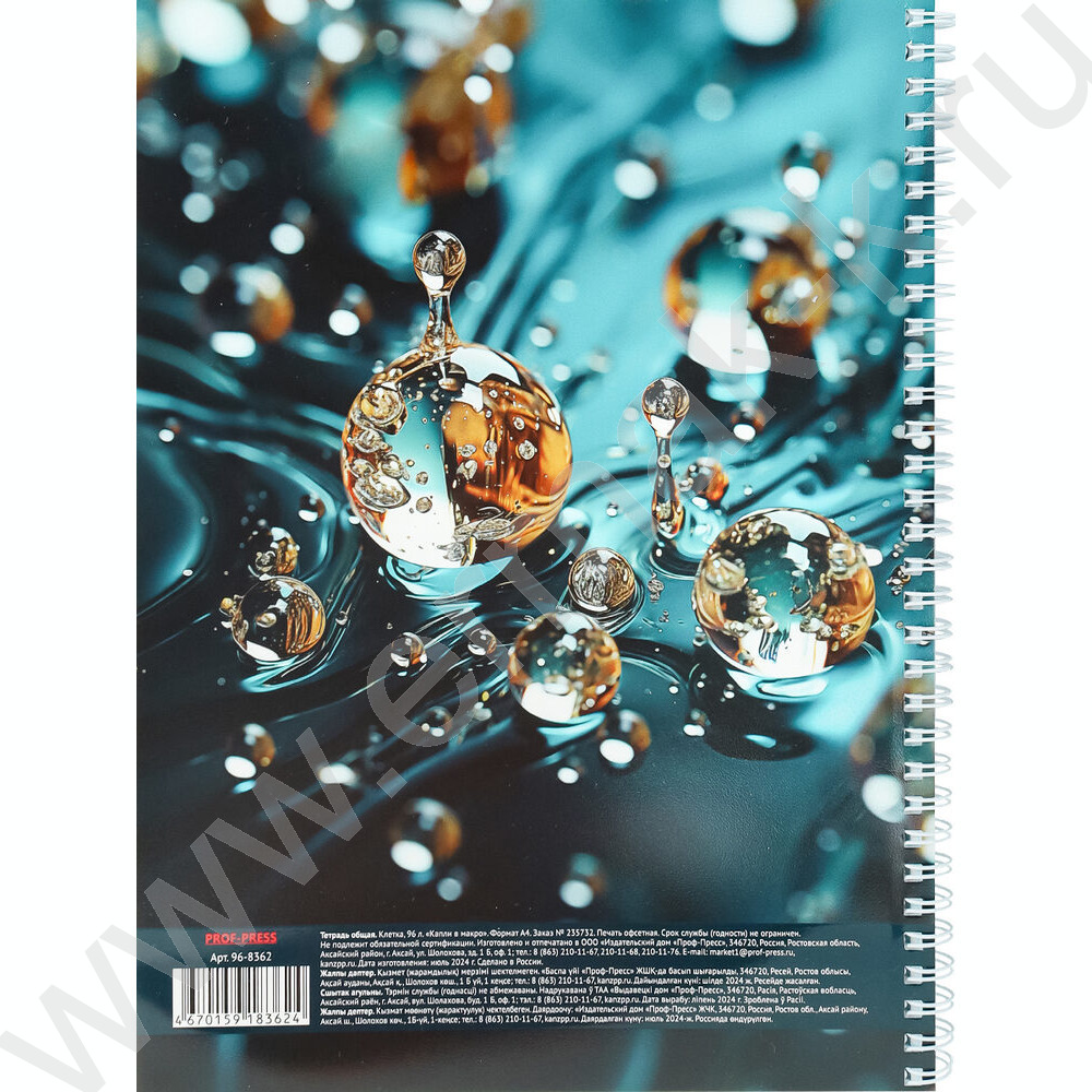 Тетрадь 96л А4 клетка/спираль "Капли в макро" /твин-лак/