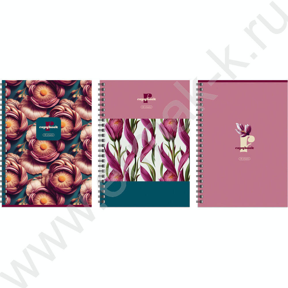 Тетрадь 96л А4 клетка/спираль "Flower story" /глянц.лам.