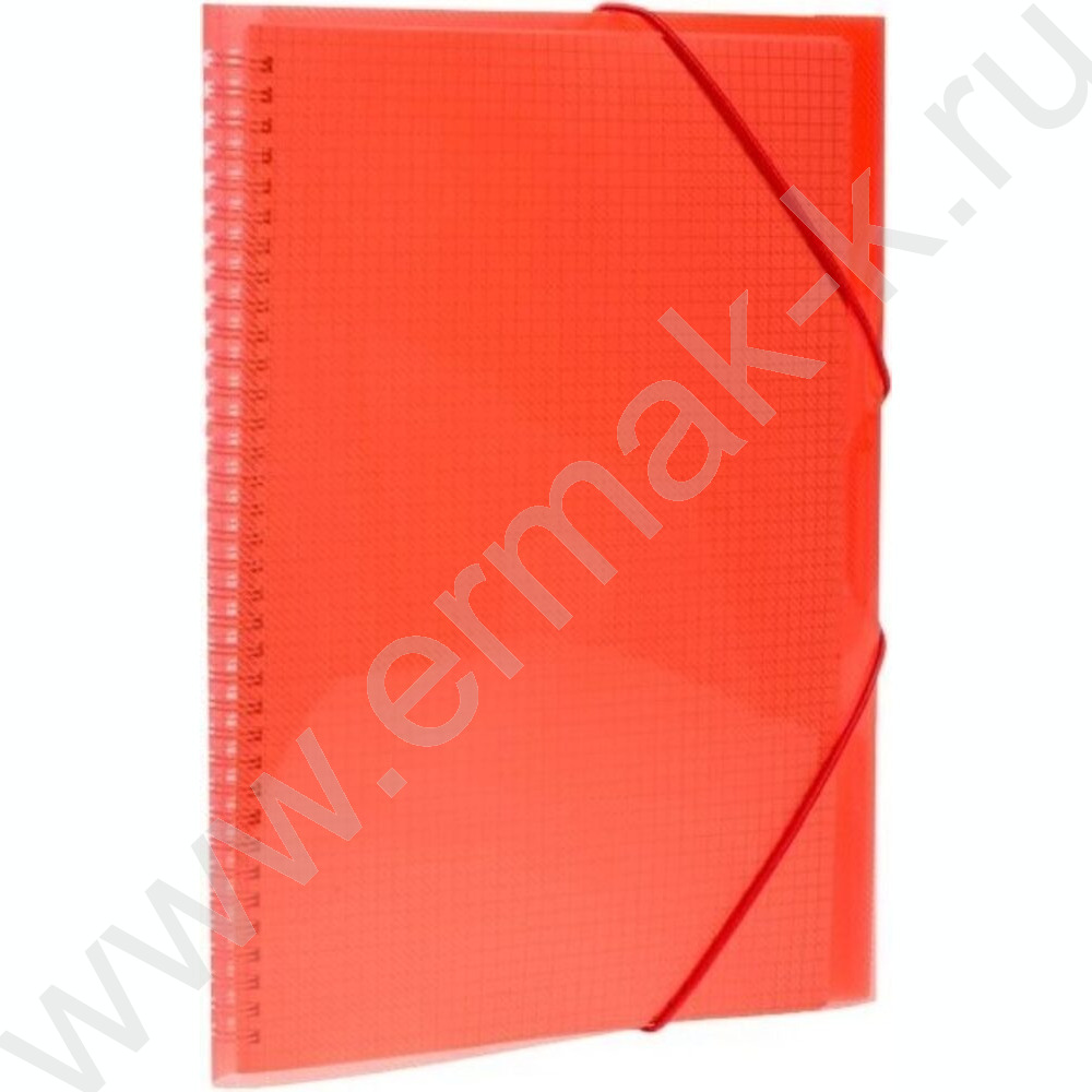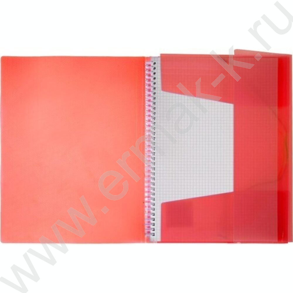Тетрадь-папка 80л А4 клетка/спираль с клапанами на резинке/пл.обл. "Красная"