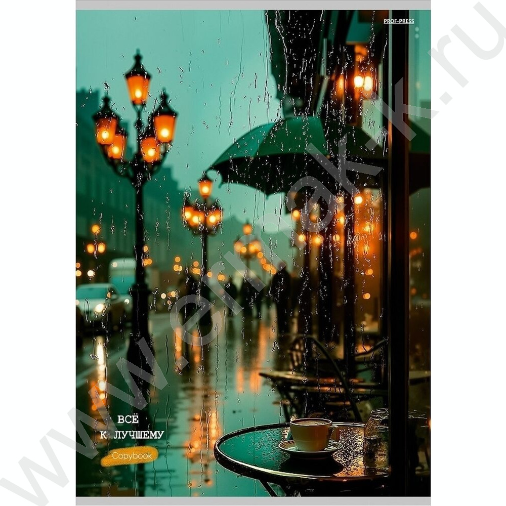 Тетрадь 48л А4 клетка "Дождь на городской улице"