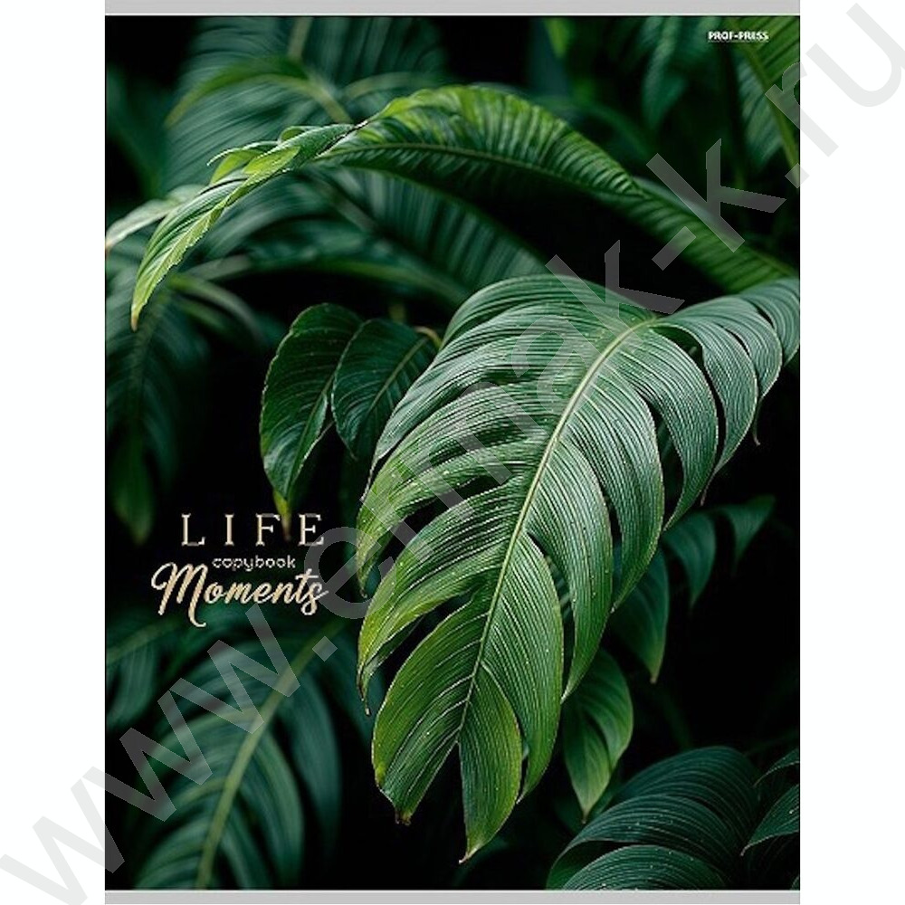Тетрадь 96л А4 клетка "Зеленые листья-5" /тиснение холст/