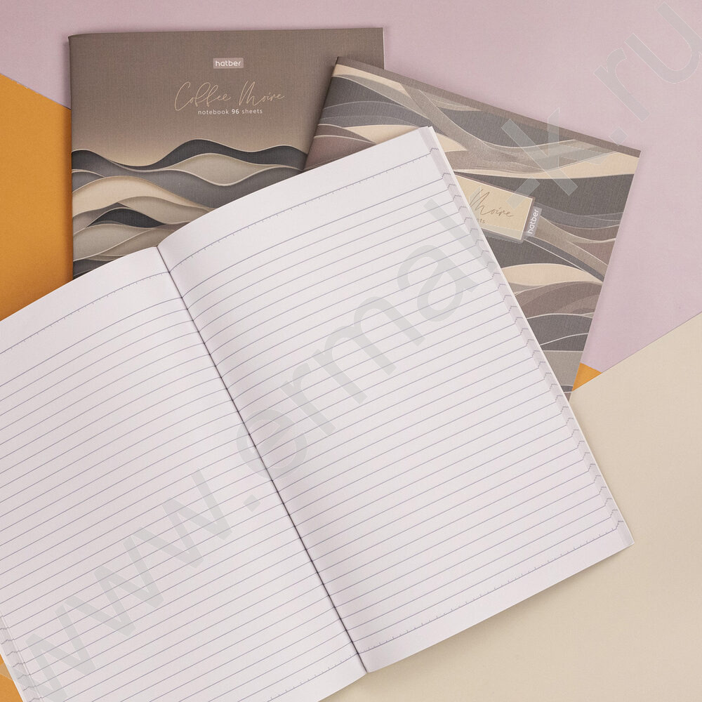 Тетрадь 96л А4 линейка "Кофейный муар" /мат ламин,тиснение/ ассорти