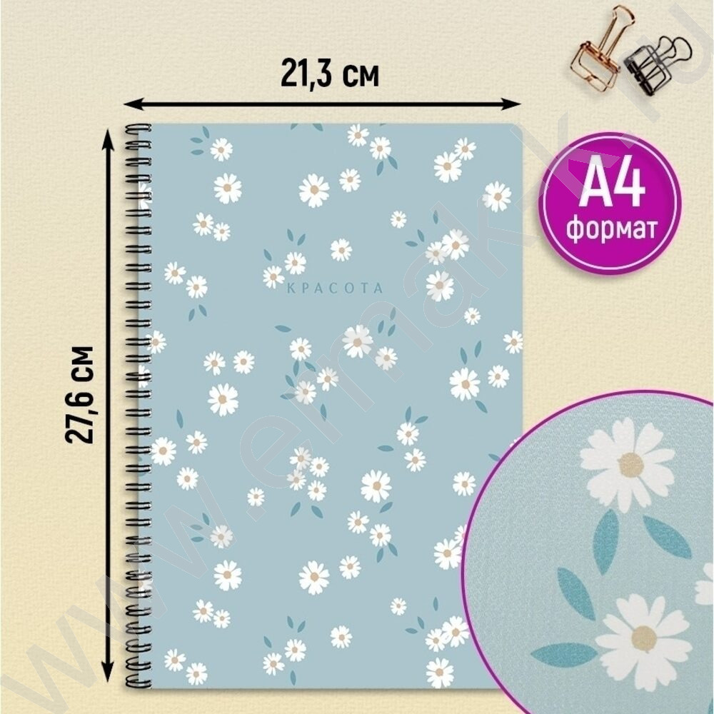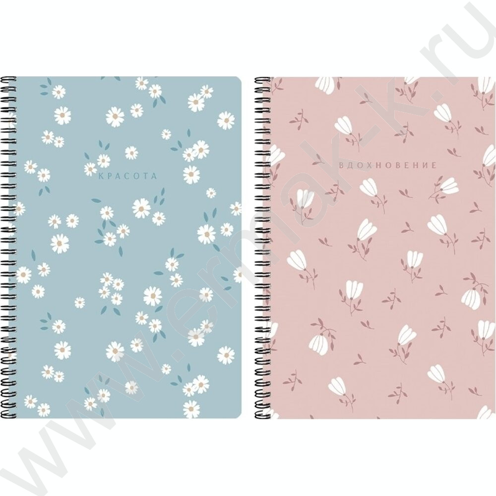 Тетрадь 96л А4 клетка/спираль "Цветочные мотивы" /тиснение лён/ NEW