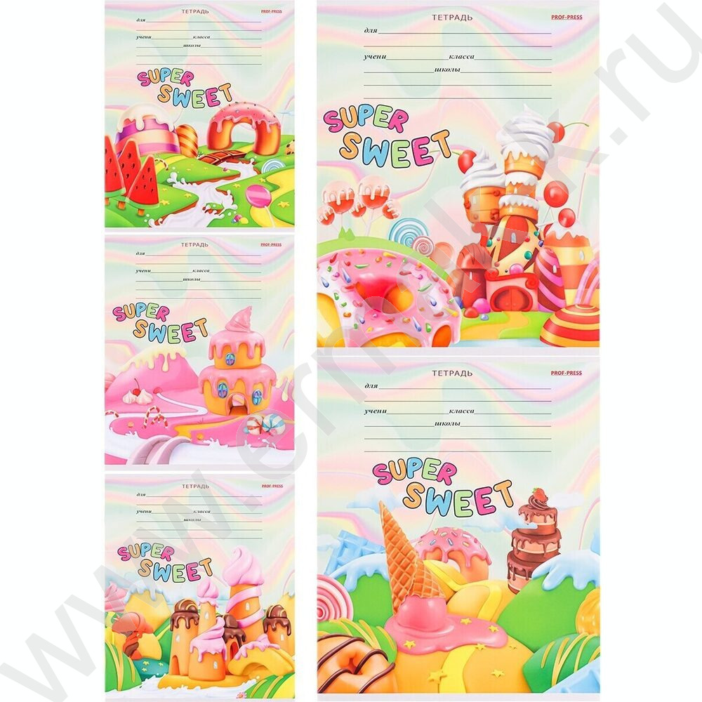 Тетрадь 12л клетка "Сладкая страна микс" 5видов