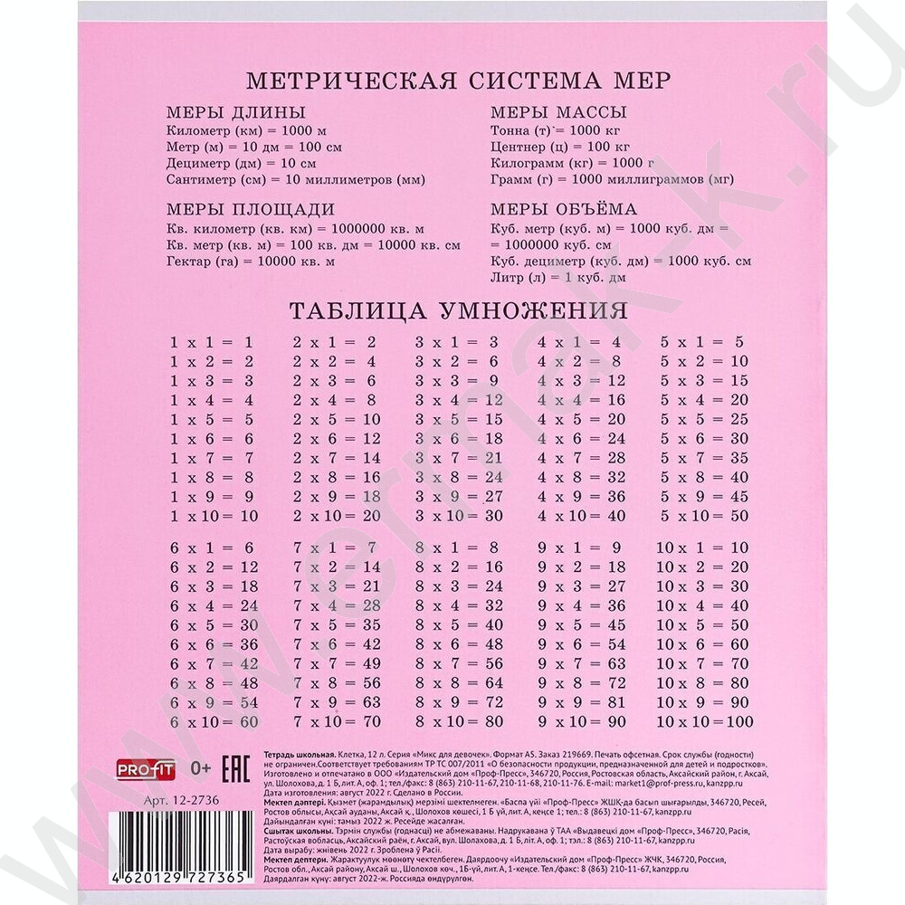 Тетрадь 12л клетка "Микс для девочек" 5видов