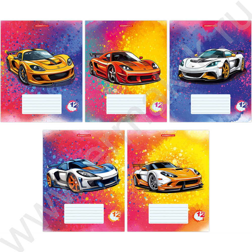 Тетрадь 12л клетка "Яркие машины" /твин УФ лак/ ассорти