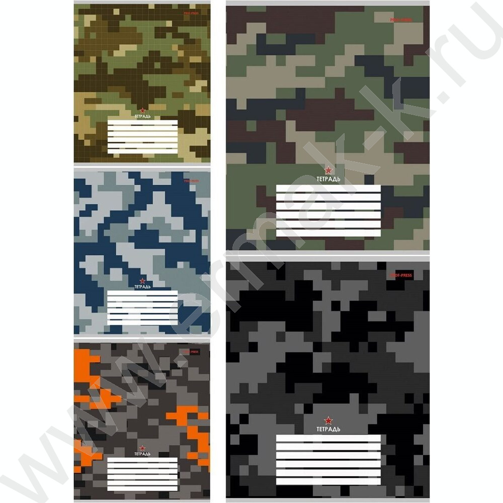 Тетрадь 12л клетка "Пиксельное милитари" 5видов