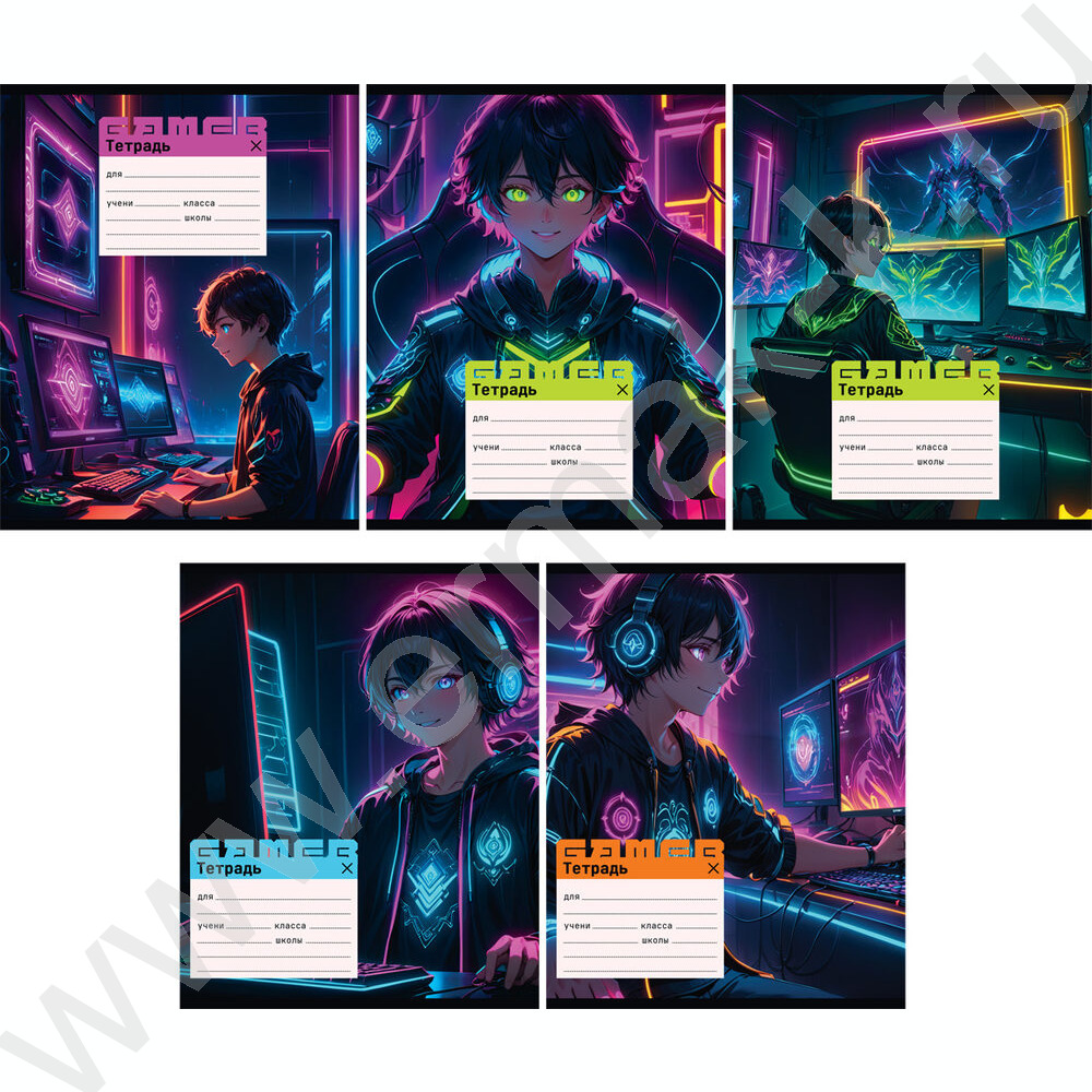 Тетрадь 12л клетка "Gamer" /выб.лак/ ассорти