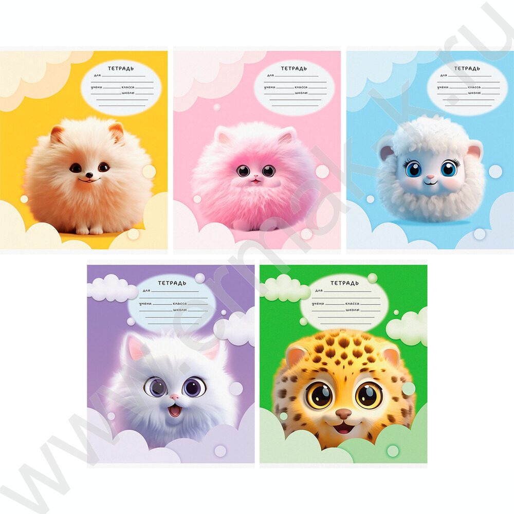 Тетрадь 12л клетка "Пушистики" ассорти