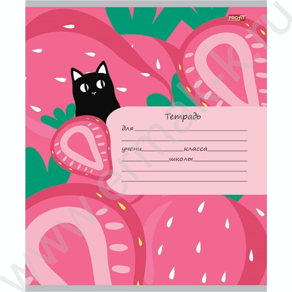Тетрадь 12л клетка "Фрукты,ягоды и кот" 5видов