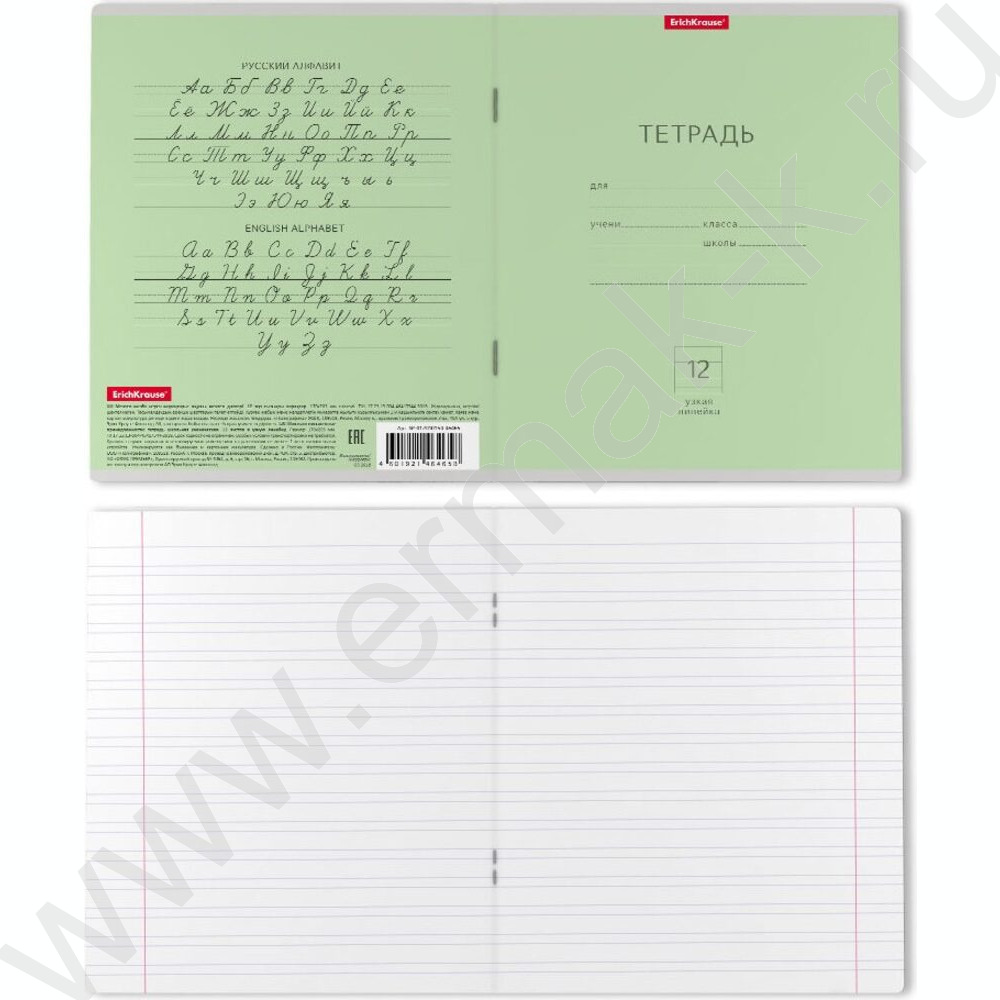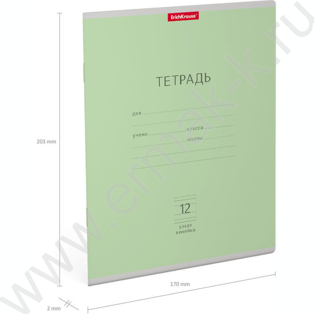 Тетрадь 12л линейка узкая "Классика" зеленый
