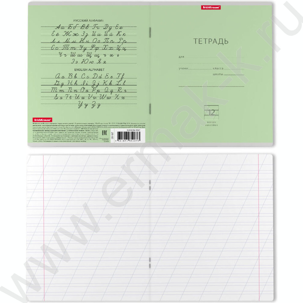 Тетрадь 12л линейка косая "Классика" зеленый