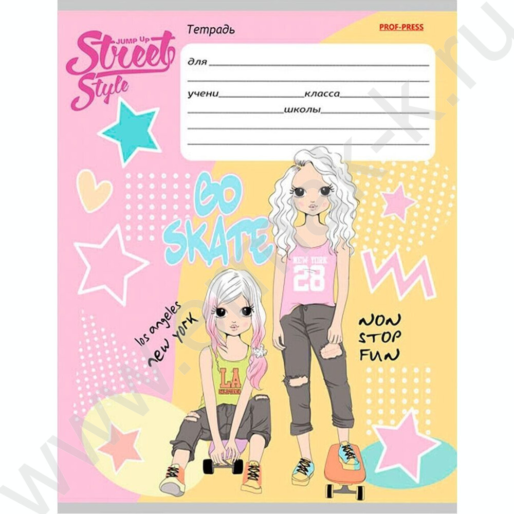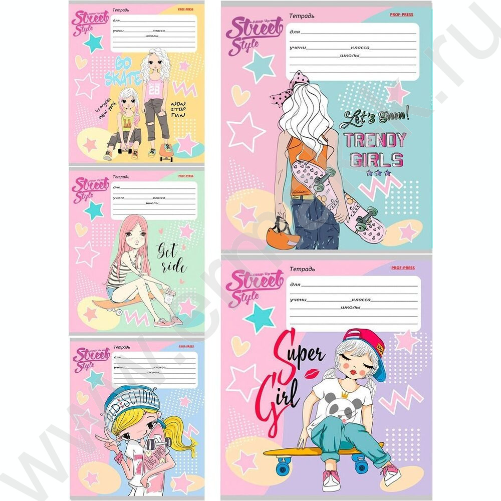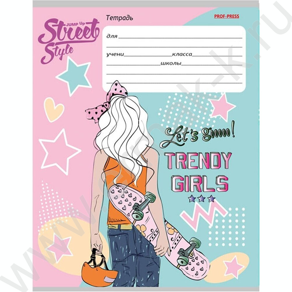Тетрадь 12л линейка косая "Стильные девчонки" ассорти