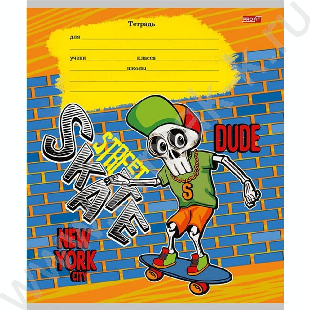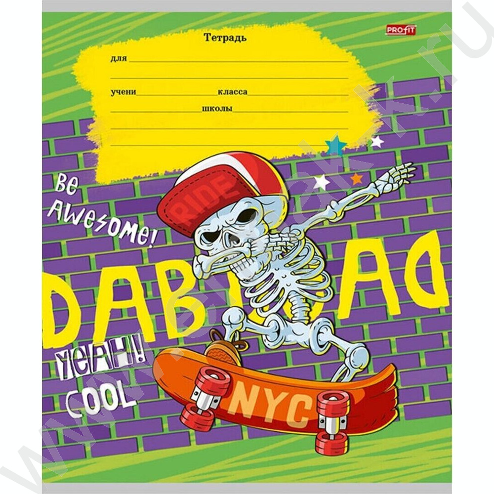 Тетрадь 12л линейка косая дополнительная "Активные скелетоны" 5видов
