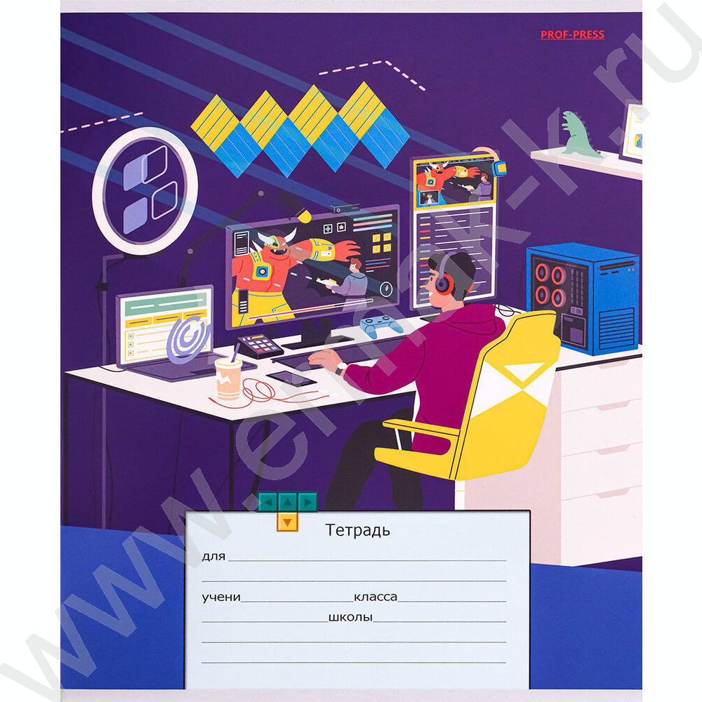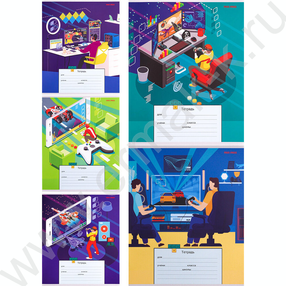Тетрадь 12л линейка косая "Геймеры" 5видов