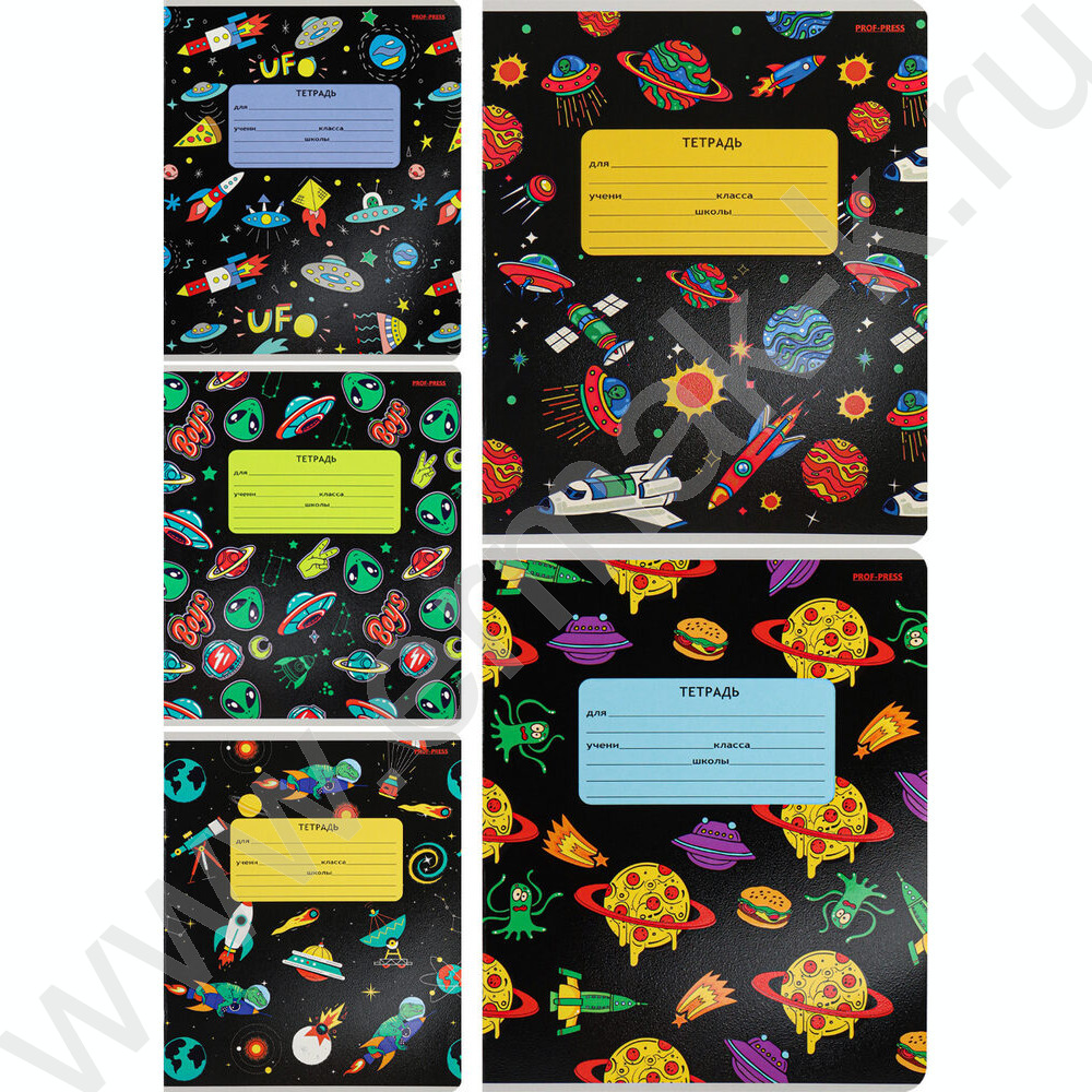 Тетрадь 12л линейка косая дополнительная "Переполох в космосе" 5видов