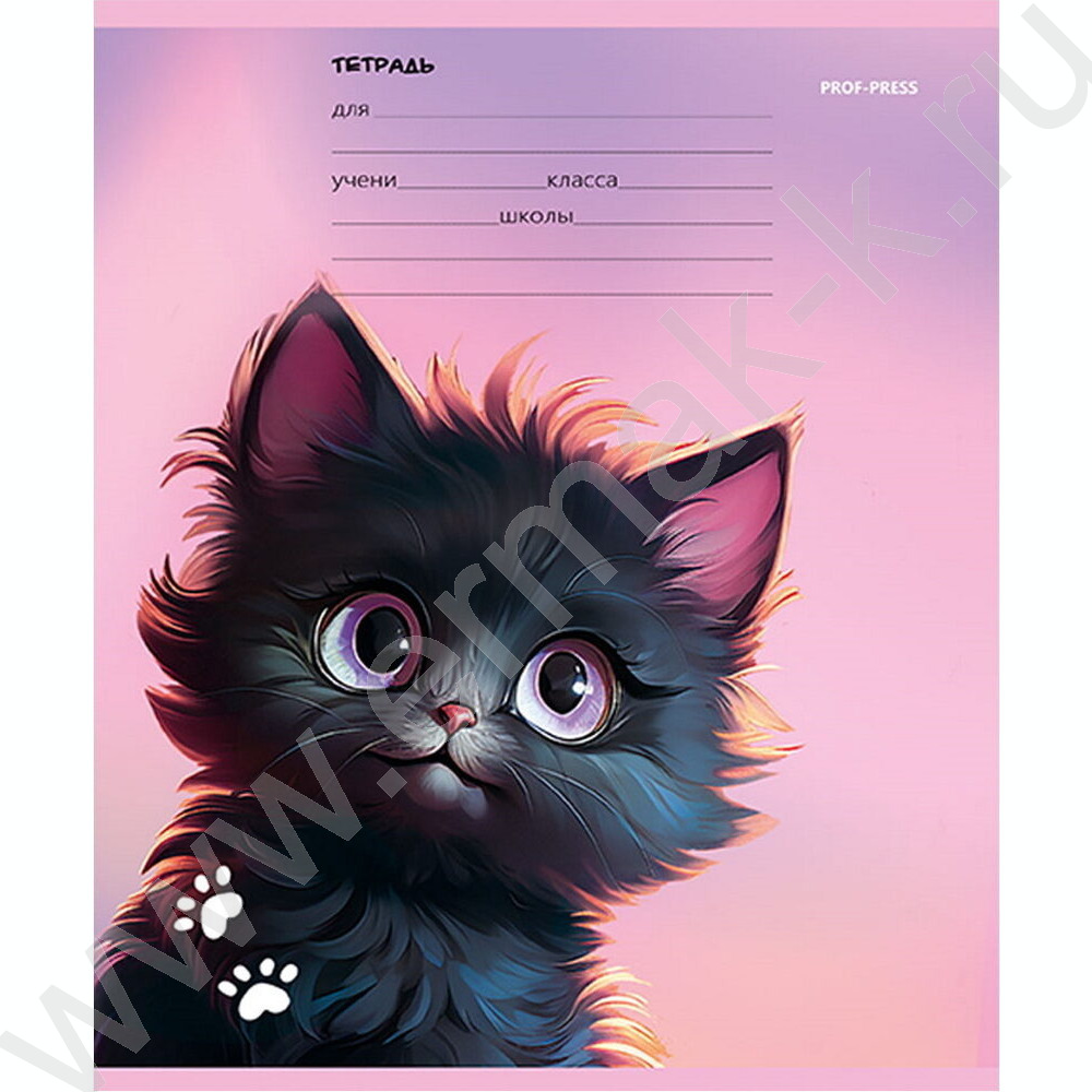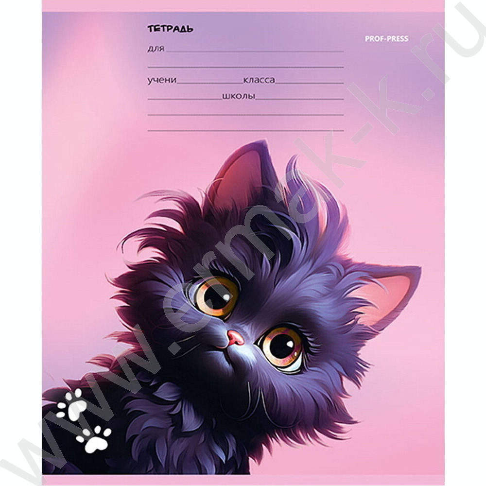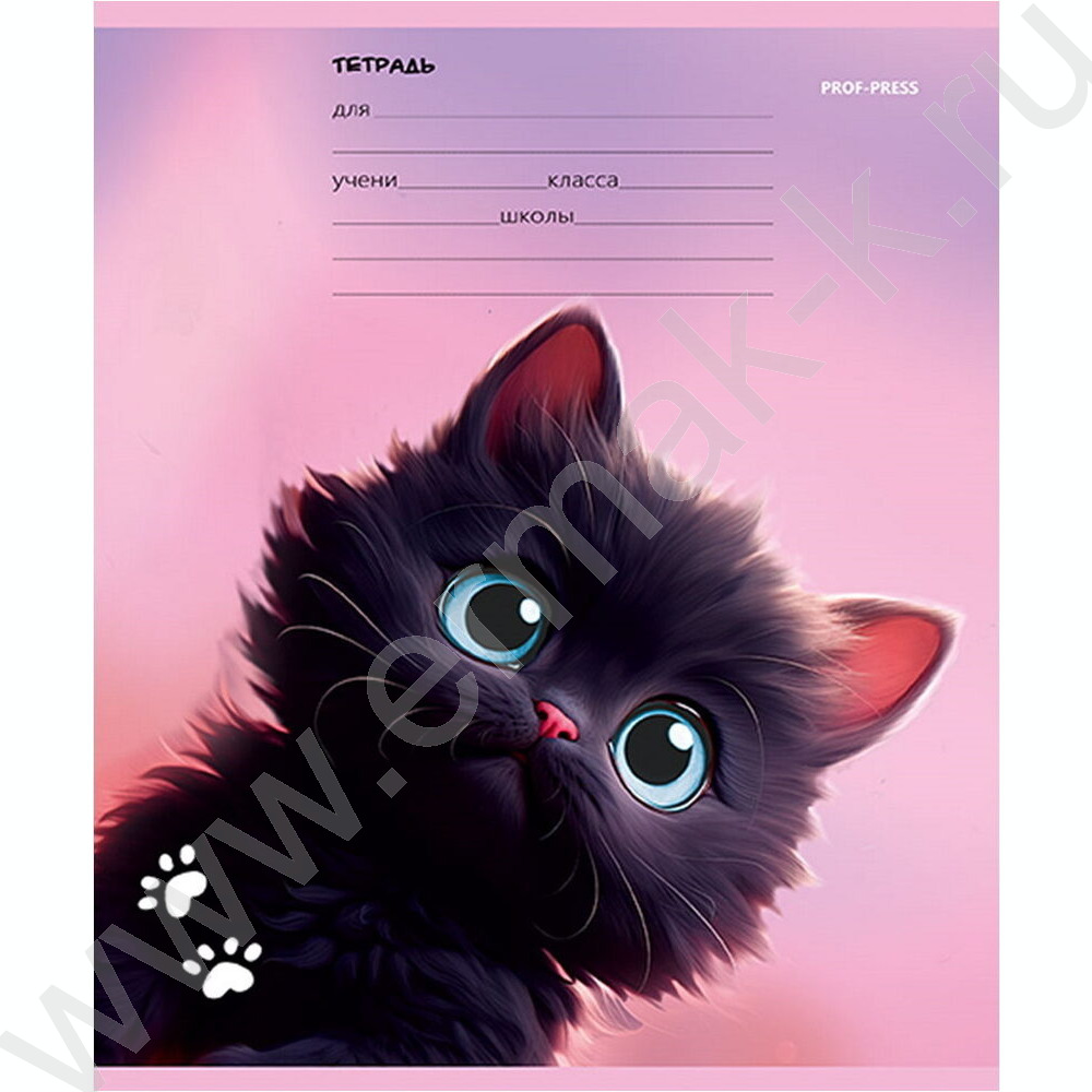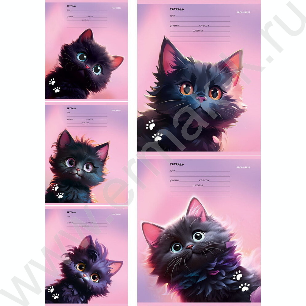Тетрадь 12л линейка "Черный котик" 5видов