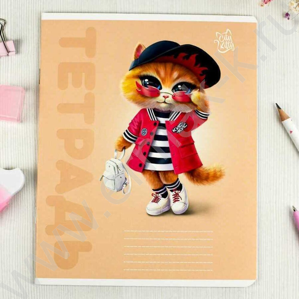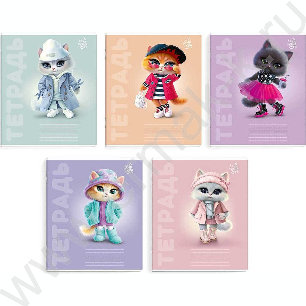 Тетрадь 12л линейка "Городские кошечки" /выборочный УФ-лак/ ассорти