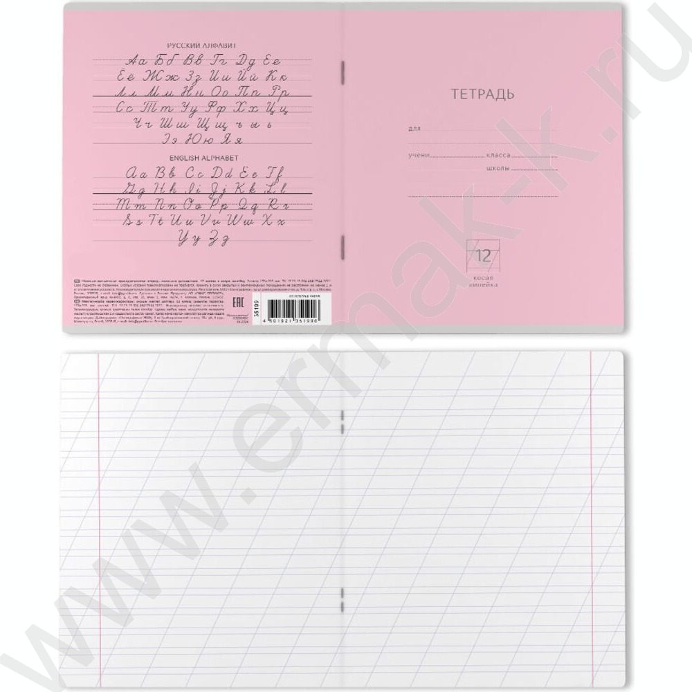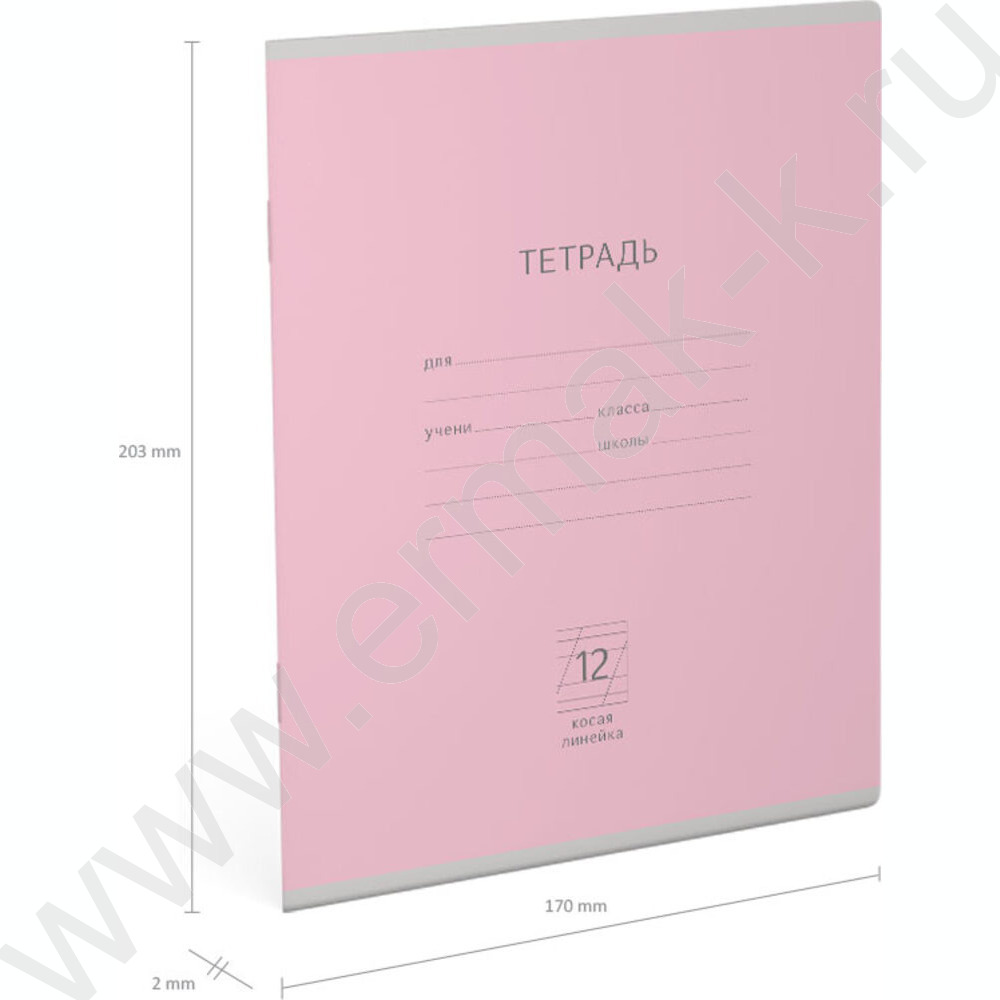 Тетрадь 12л линейка косая "Классика" розовый