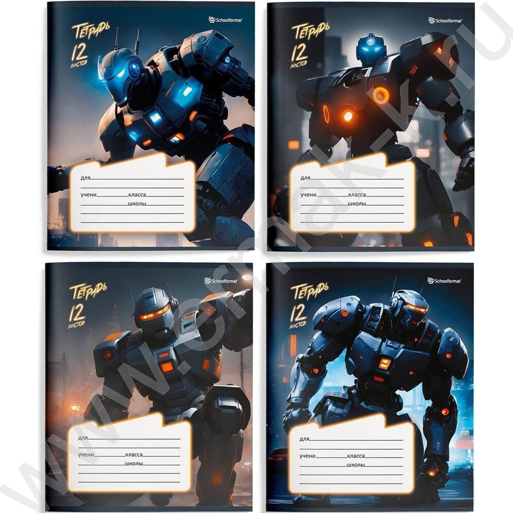 Тетрадь 12л линейка "Восстание машин" /лак/ 4вида