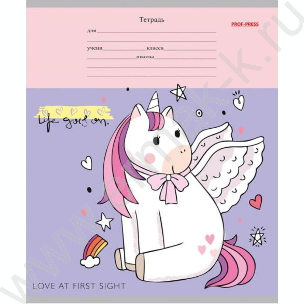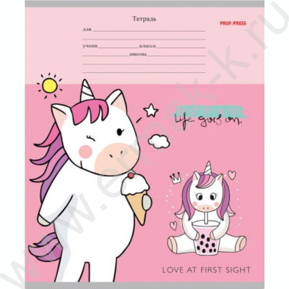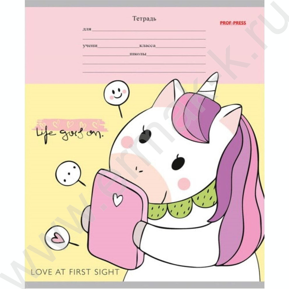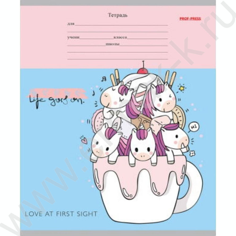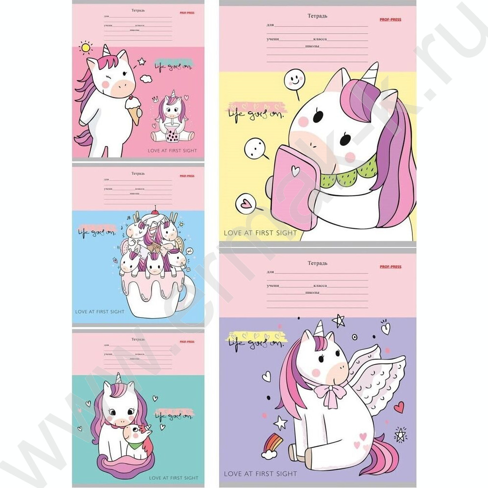 Тетрадь 12л линейка косая дополнительная "Веселые единороги" 5видов