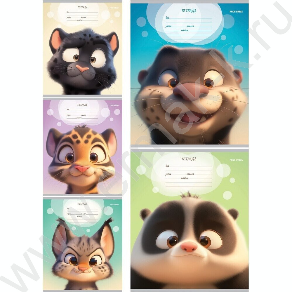 Тетрадь 12л линейка "Мордочки животных-1" 5видов