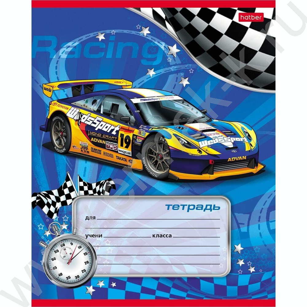 Тетрадь 12л линейка косая "Спортивные авто" 5видов
