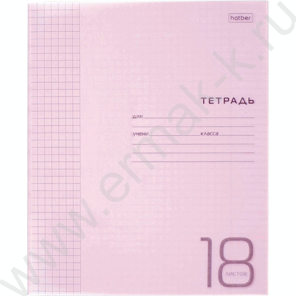 Тетрадь 18л клетка с пластиковой обложкой "Розовая"