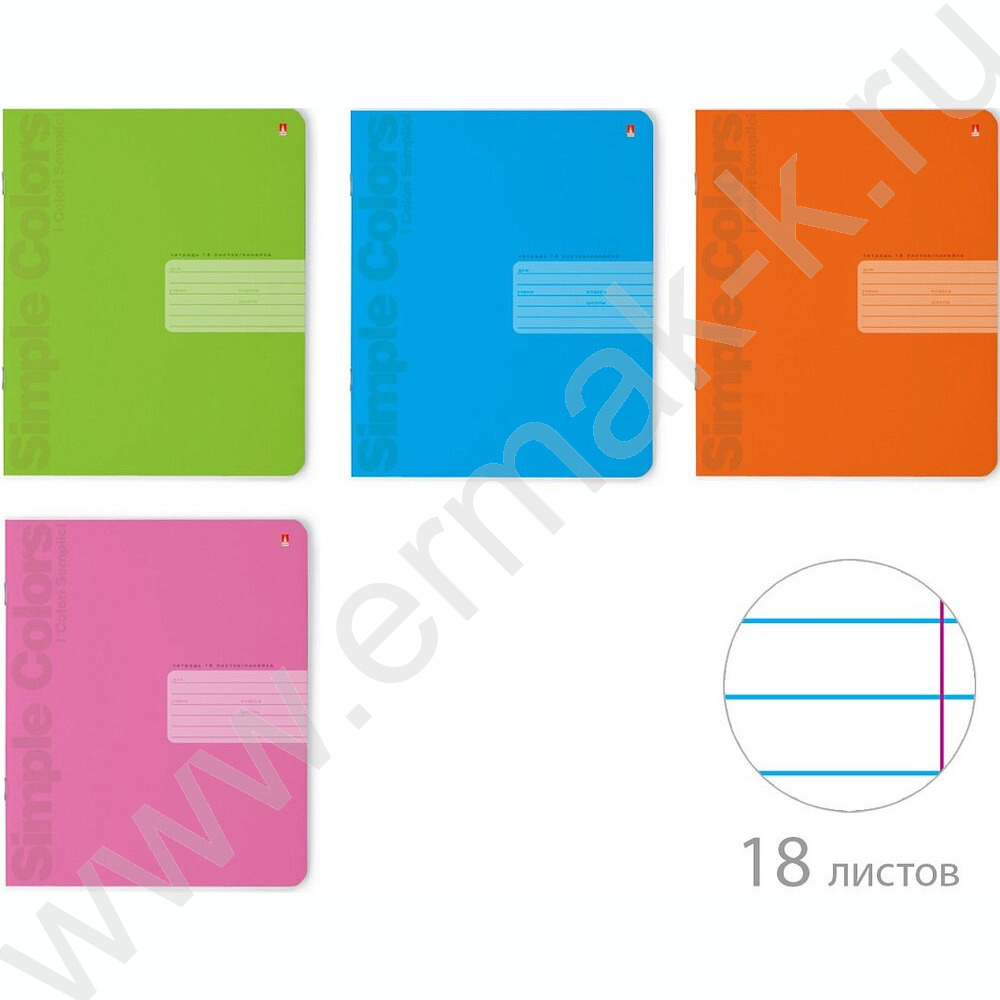 Тетрадь 18л линейка "Простые цвета" ассорти