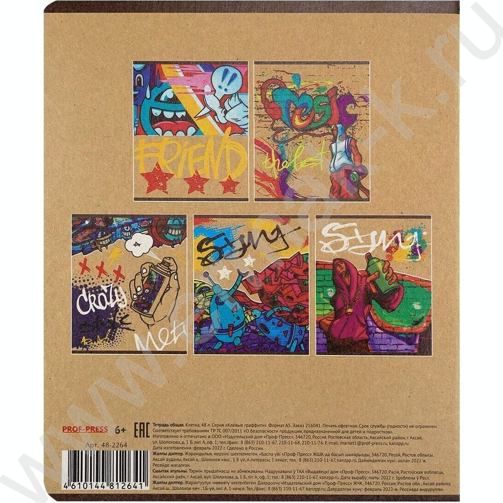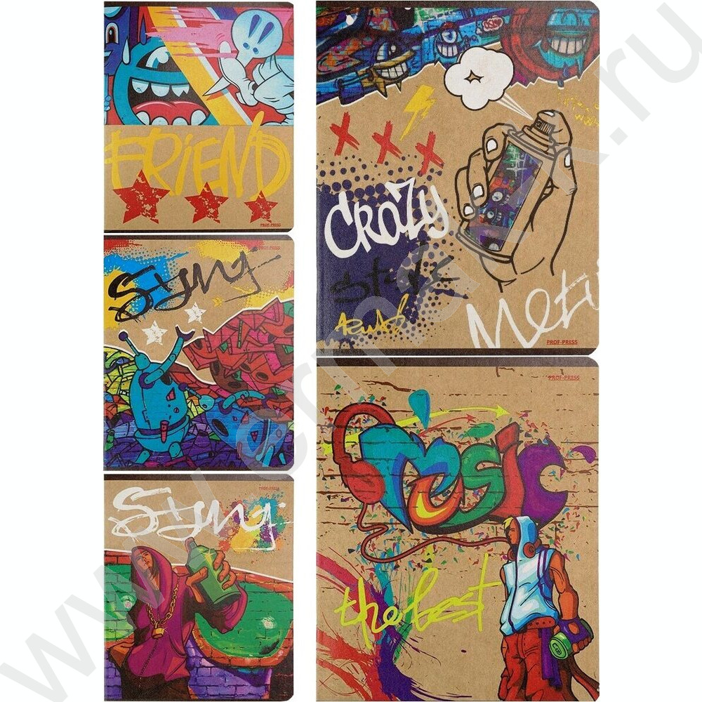 Тетрадь 48л клетка "Клевое граффити" /крафт/ 5видов